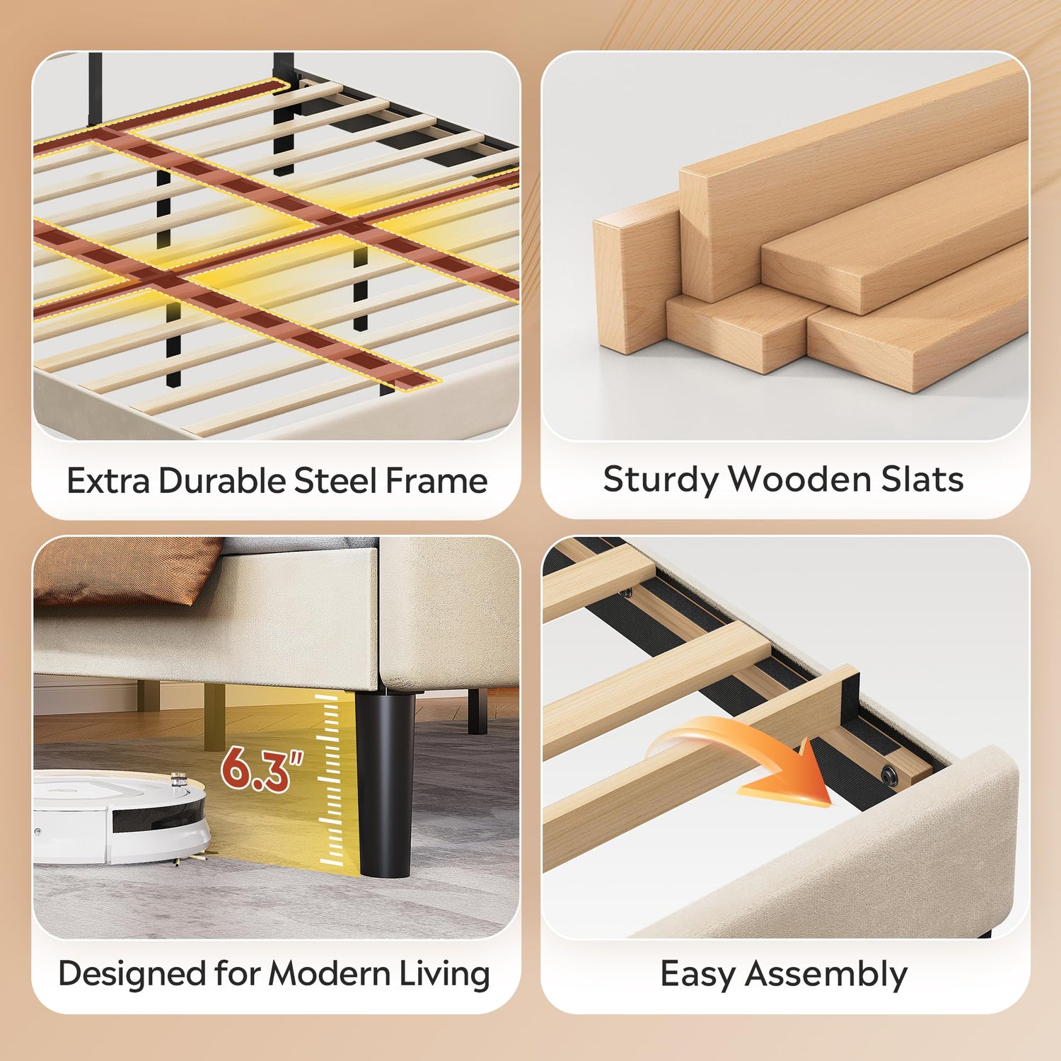- 【No Box Spring Needed】 Designed with strong wood slats support, this bed frame requires no box spring—stable, durable, and cost-saving.