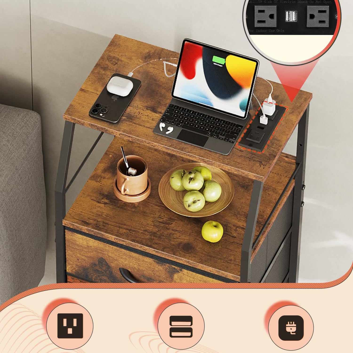 - [Convenient Charging Station ] The bedside table includes 2 AC outlets and 3 USB Ports with dedicated port for the LED lights. Charge phones, tablets, and more simultaneously, ideal as a nightstand with charger station.