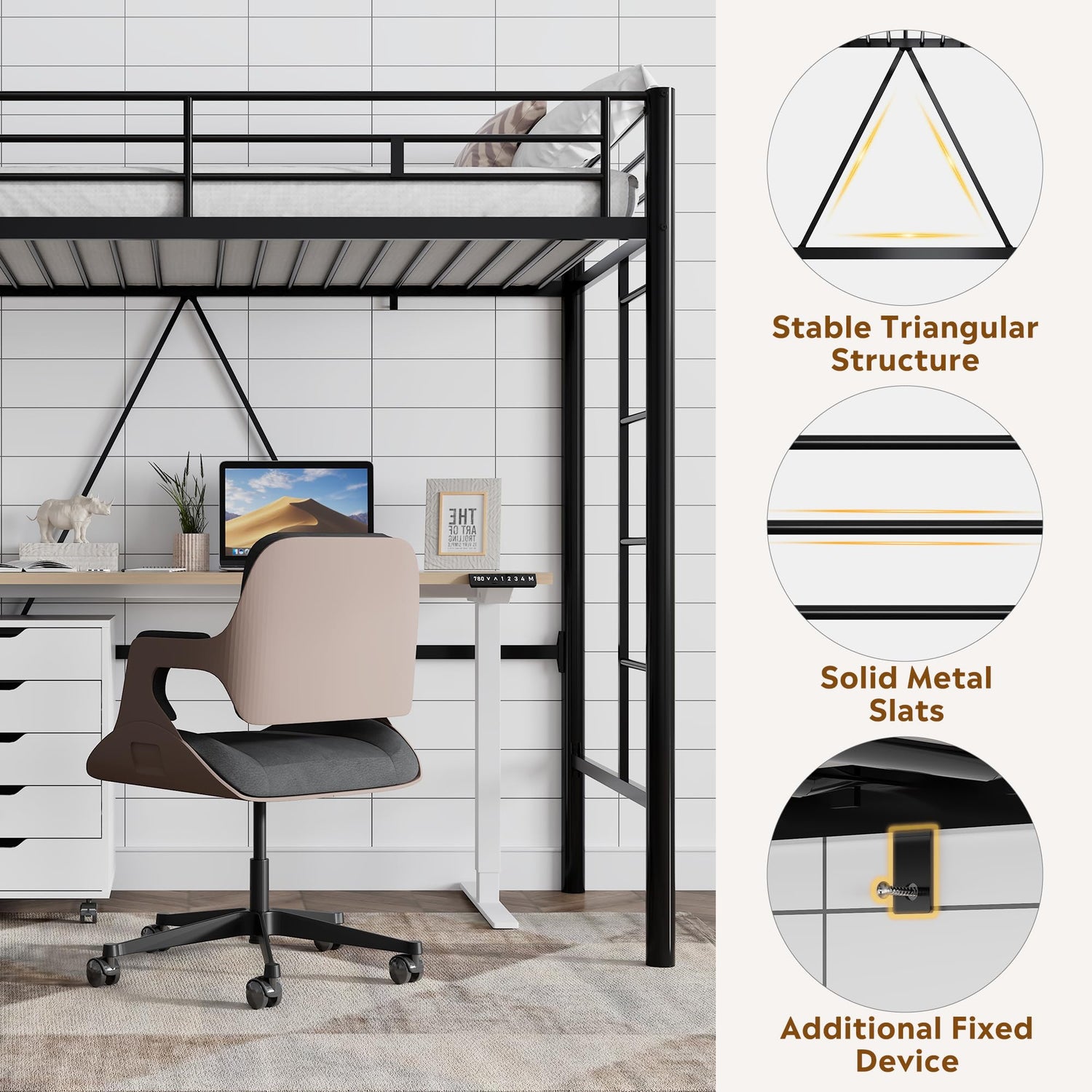 - 【✨ Heavy-Duty Support】Crafted with thickened steel, this twin loft bed supports up to 450 lbs, ideal for teens and adults. The unique triangular reinforcement system with wall-locking mechanisms ensures even weight distribution and enhanced stability.