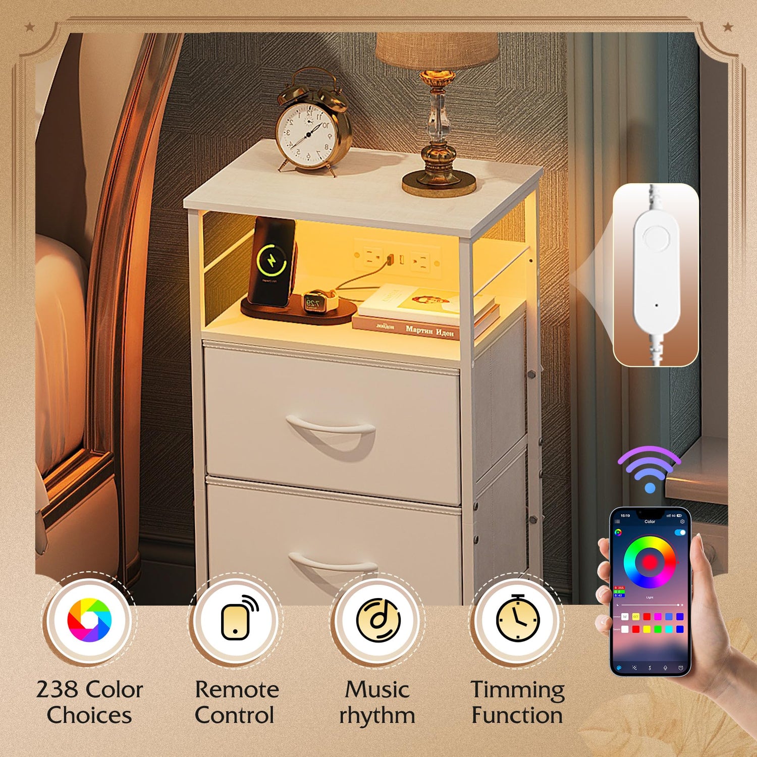 - [Easy to Assemble] This small end table with charging station comes with instruction and enough components, you can follow the steps to assemble it easily. Also, This fabric 3 drawer LED nightstand with charger station features a specially designed anti-tip device to prevent any accidents during use. If you meet any problems, please feel free to send messages to us.