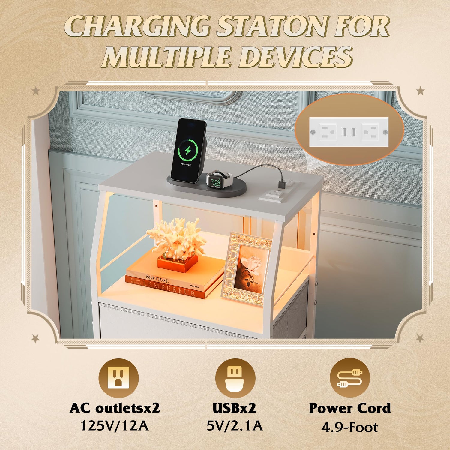 - Night Stand with Charger Station: The layout of the built-in power sockets is more convenient and user-friendly. It features a combination of 2 USB ports and 2 AC outlets to meet various charging needs. The charging station is ETL certified, so you don't need to worry about safety issues.