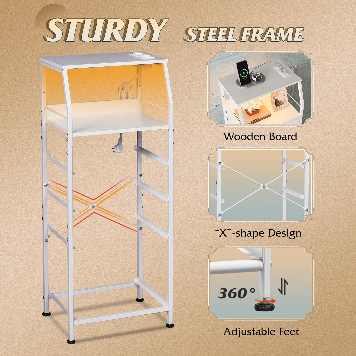 - Sturdy & Secure: The bed side table is made of a sturdy metal frame, particle board, and non-woven fabric. The top and open shelf can support up to 22 lbs, while the drawer can hold up to 5.5 lbs. The 360° adjustable feet and X-shaped rods enhance the stability of this bedside table/nightstand. An additional anti-tip device is provided for added safety, especially for households with children or pets.