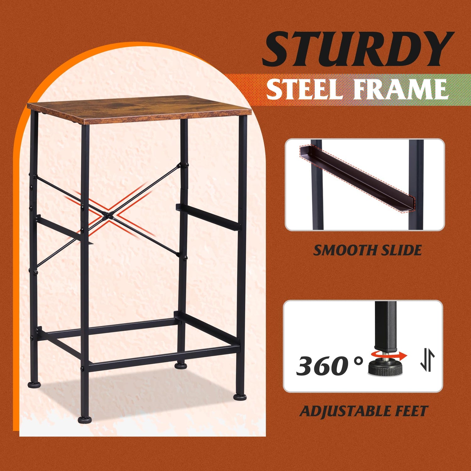 - STURDY & DURABLE: The nightstand has strong steel frame and water-resistant wooden top to ensure a long service time, easy pull handles to make opening and closing smooth, and 4 adjustable plastic feet to protect floor from scratches.