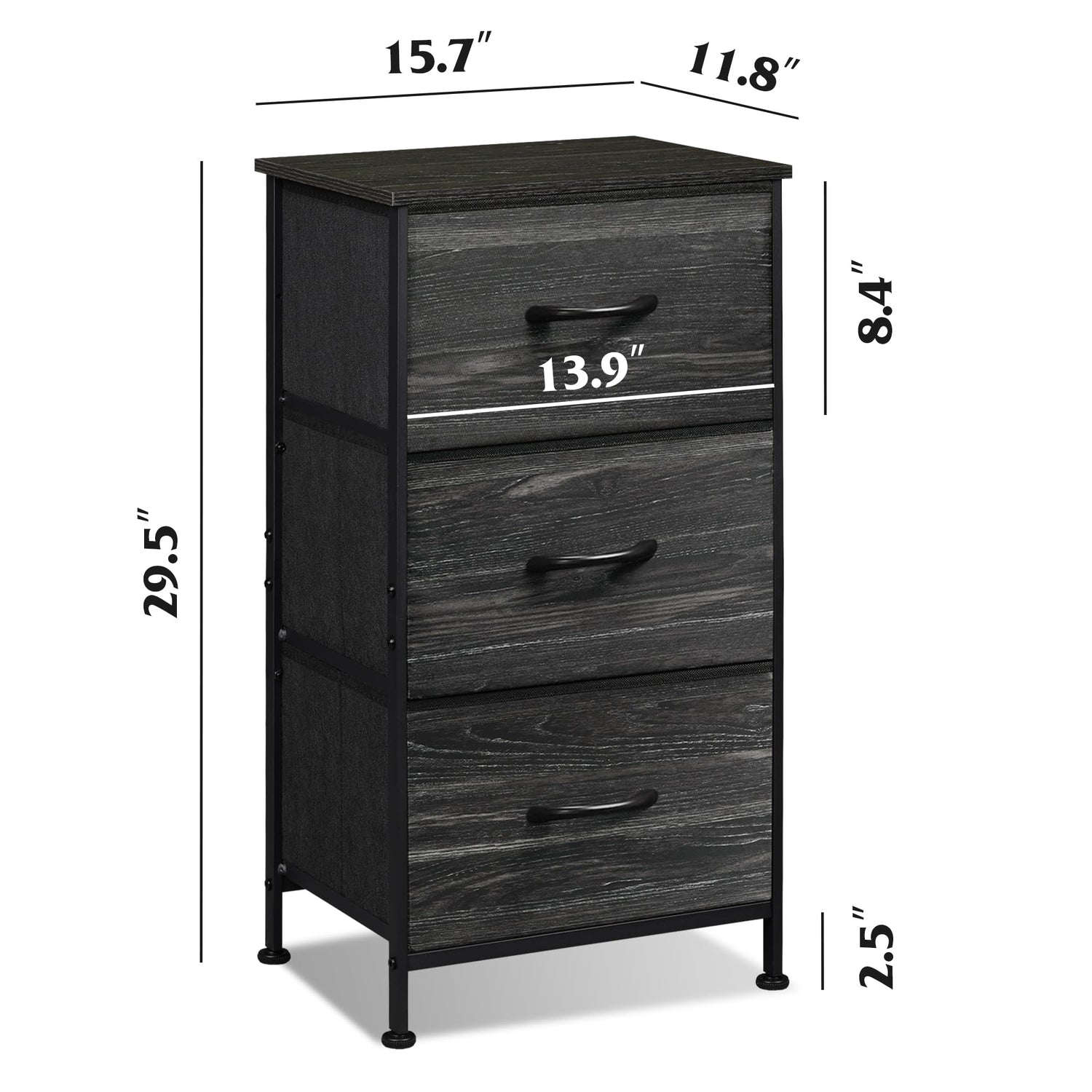 WLIVE Nightstand with 3 Drawers, Fabric Dresser, Organizer Unit, Storage Dresser for Bedroom, Hallway, Entryway, Closets, Steel Frame, Wood Top, Easy Pull Handle, Charcoal Black Wood Grain Print