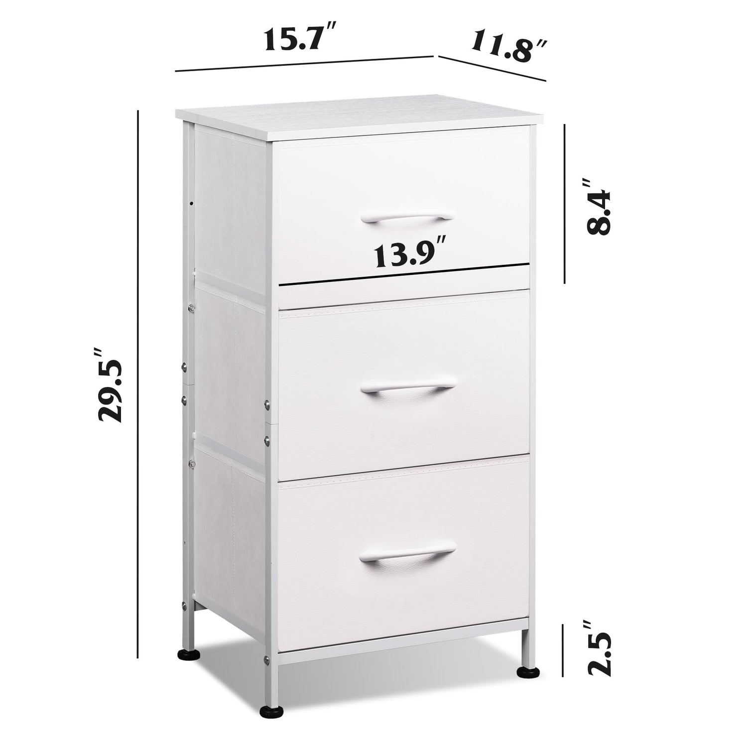 WLIVE Nightstand with 3 Drawers, Fabric Dresser, Organizer Unit, Storage Dresser for Bedroom, Hallway, Entryway, Closets, Sturdy Steel Frame, Wood Top, Easy Pull Handle, White