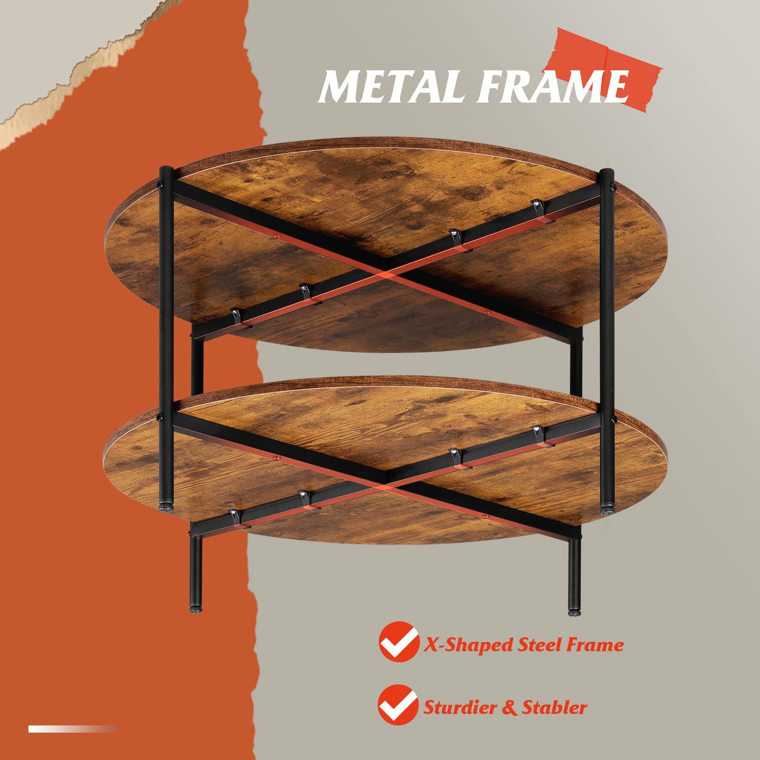 Details: WLIVE Round Coffee Table, Living Room Table with 2-Tier Storage Shelf ,32in Wood Modern Coffee table with Metal Frame and Wood Desktop,Easy Assembly,Rustic Brown.