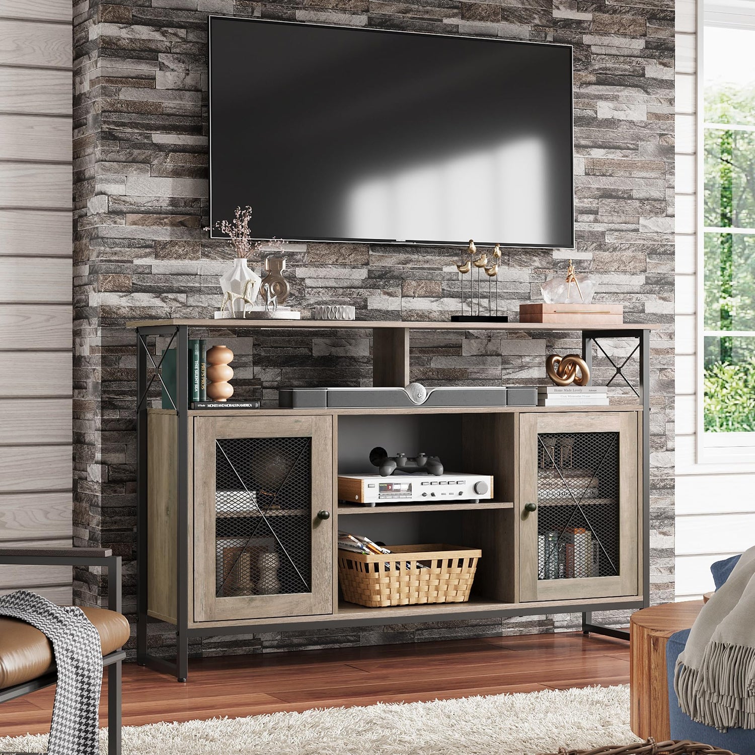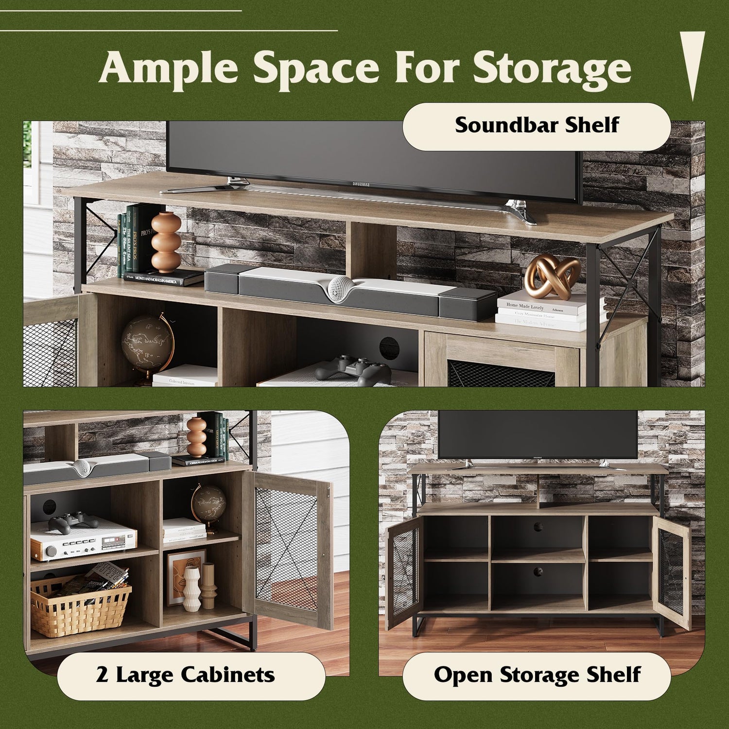 WLIVE TV Stand 55 inch TV, Tall Entertainment Center with Storage, Farmhouse Industrial TV Console for Bedroom Living Room, Greige
