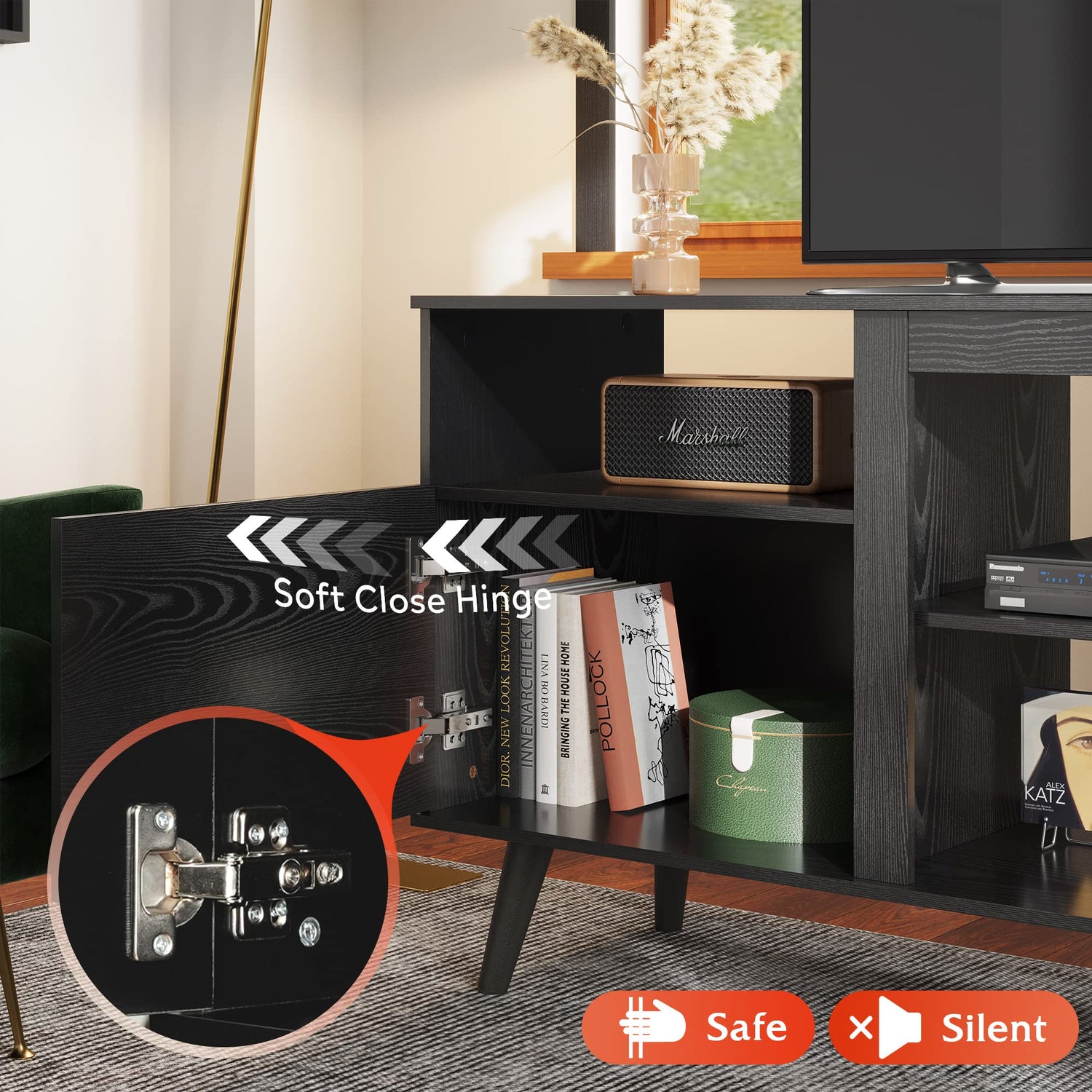 WLIVE TV Stand for 65 Inch TV, 58 inch Entertainment Center with 2 Storage Cabinets, Media Console for Living Room, Bedroom and Office, Black