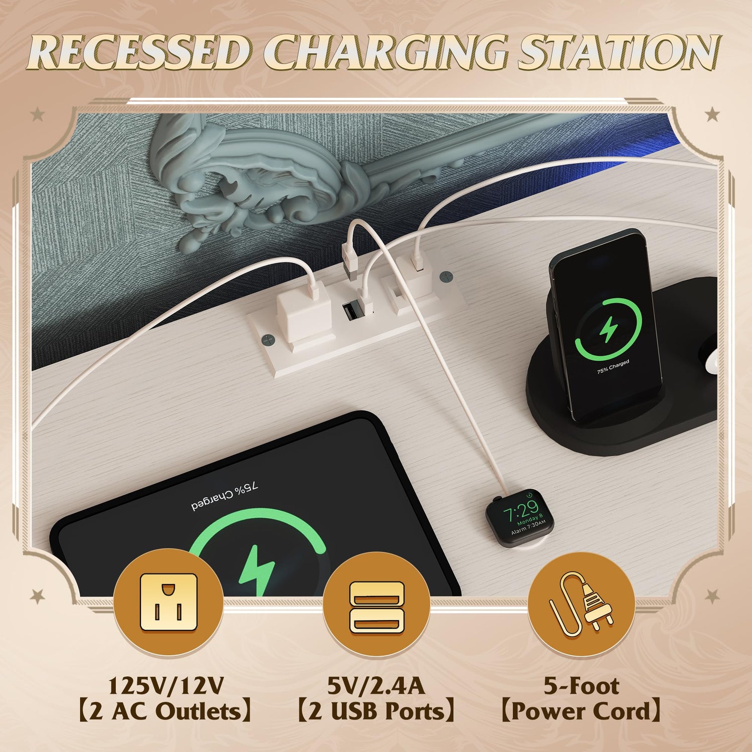 - 【Built-in Charging Station】The wide dresser is equipped with a built-in power strip featuring 2 AC outlets and 2 USB ports ,allowing you to easily power your TV ,sound system ,WiFi ,etc . ,without the need for additional extension cords.