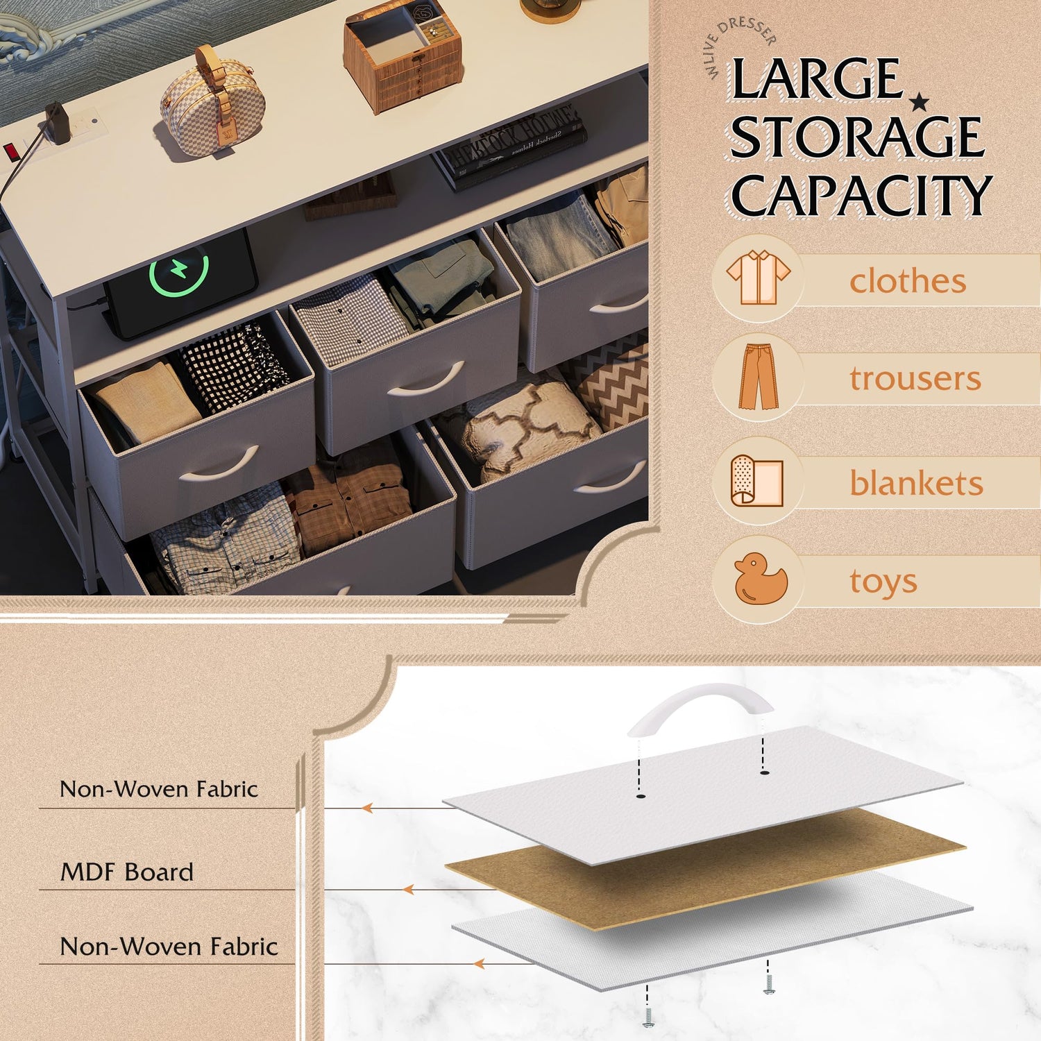 - Easy Assembly and Versatile Use: This storage drawer unit includes clear instructions and all necessary hardware for straightforward installation. This bedroom dresser is also great for the entryway, dorm, office, and it matches perfectly with other WLIVE storage dressers.