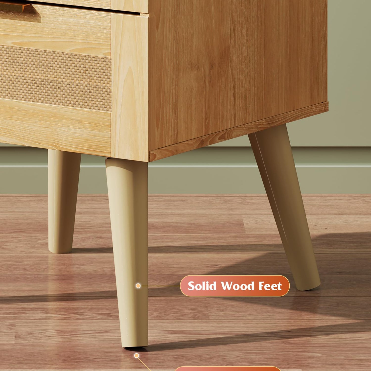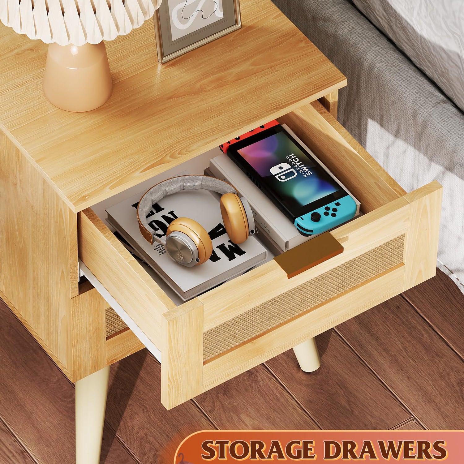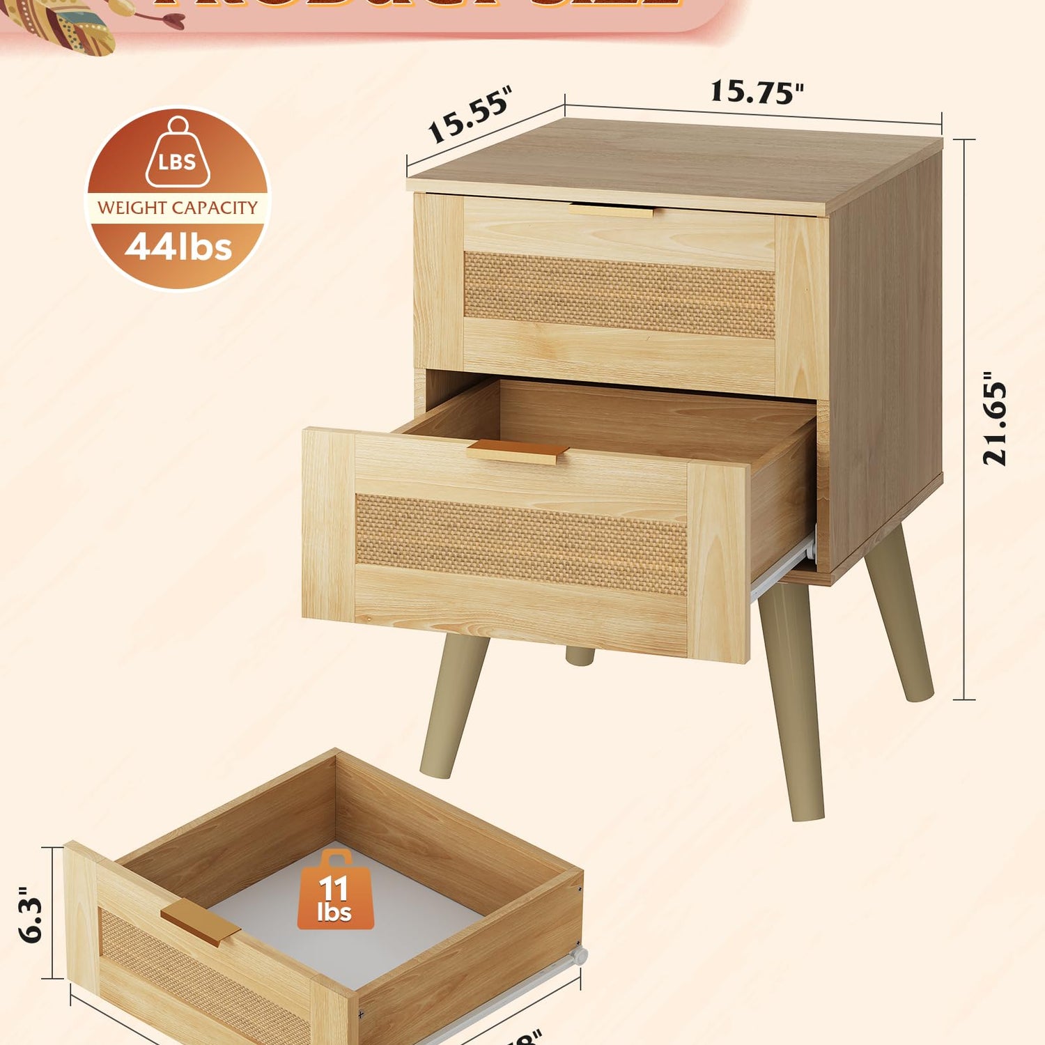 - 【Rattan Nightstand Set】Light wood + woven rattan drawers create authentic boho charm. Perfect bedside table or end table—adds natural texture to any room. Effortlessly blends with all decor styles.