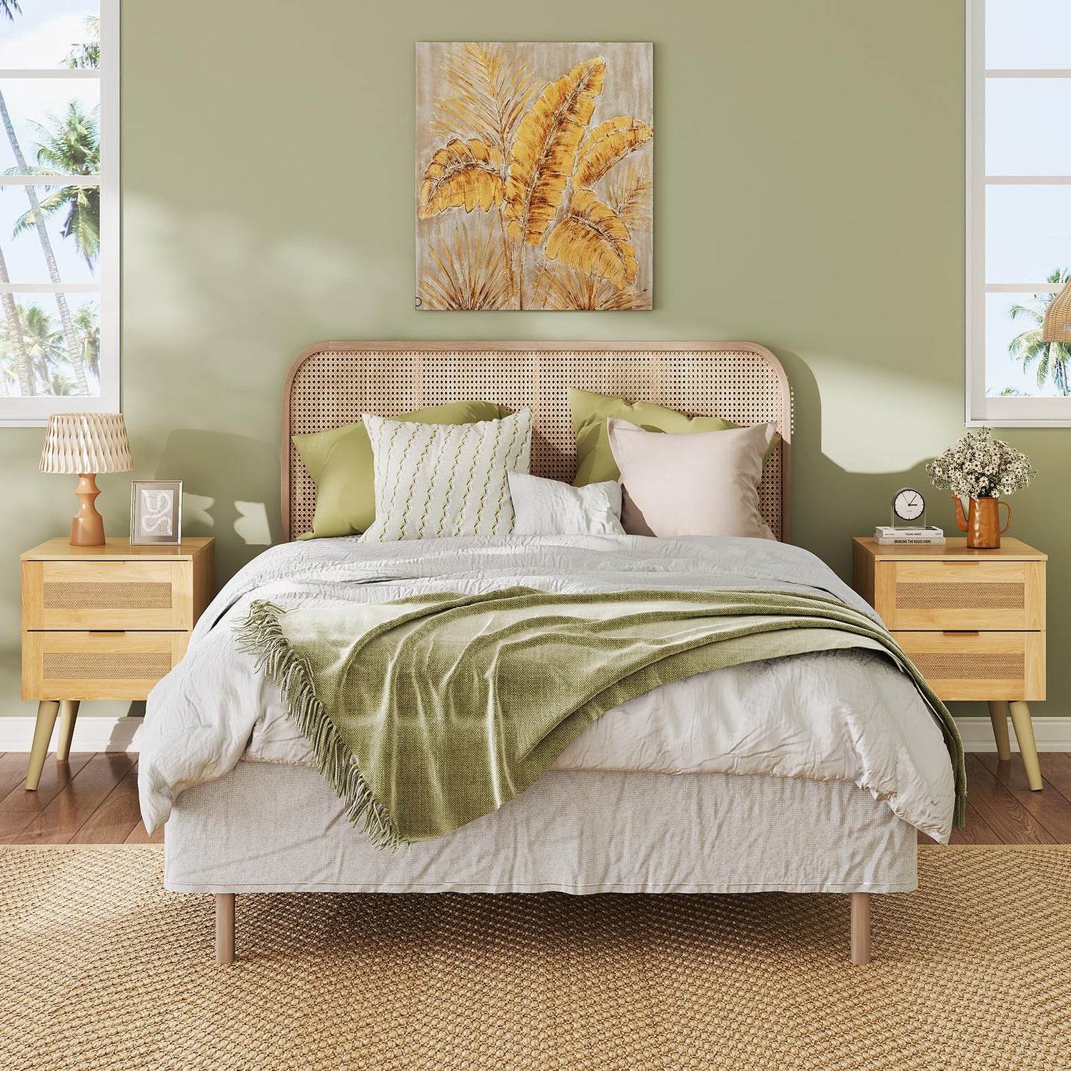 - 【Ample Storage:】Two wooden drawers of each night stand store books, wallets & daily essentials, keeping your space tidy. Smooth-gliding rails & metal handles ensure effortless access—function meets boho charm.