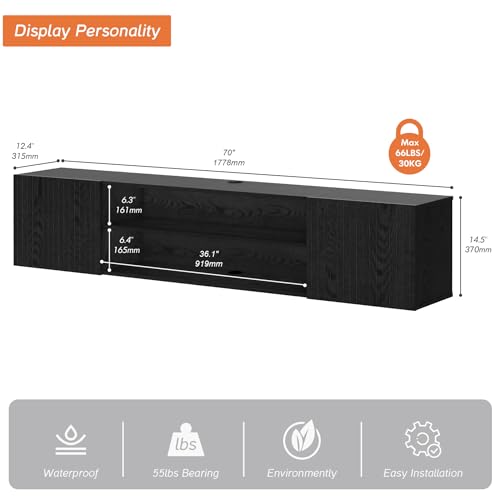 - Modern & Minimalist Design: This floating TV console blends classic design with a stylish wave-patterned element, giving your living room a modern, sophisticated feel. The 70-inch wall-mounted cabinet saves floor space, making it an ideal choice for small or cluttered areas.
