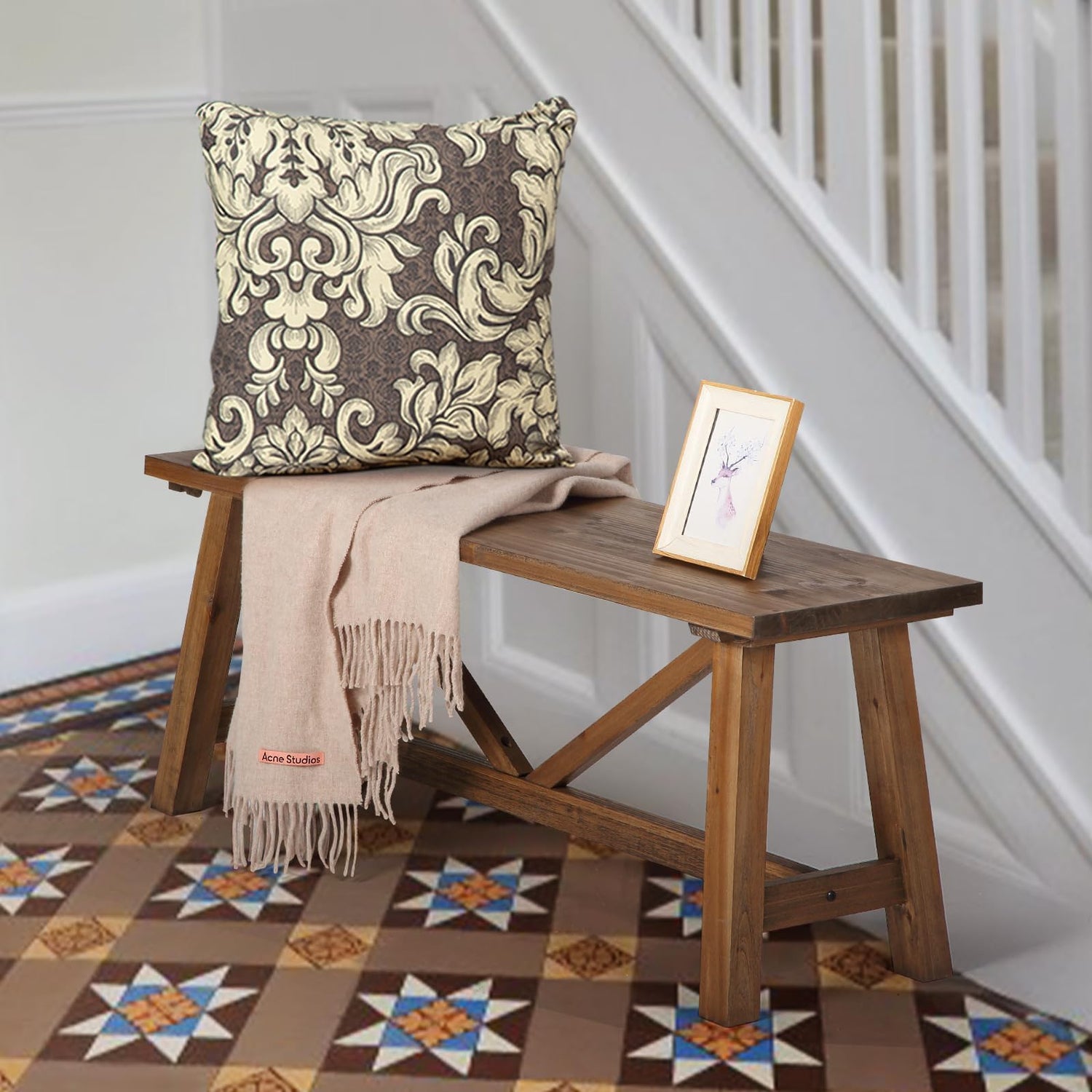 - 【Small Wood Bench】-This wooden bench seat has a simple farmhouse design that can be amplified by cushion pillows and woven fabric. So take a load off and relax on this decorative bench. A small piece of furniture that make a big difference to give your home an instance refresh