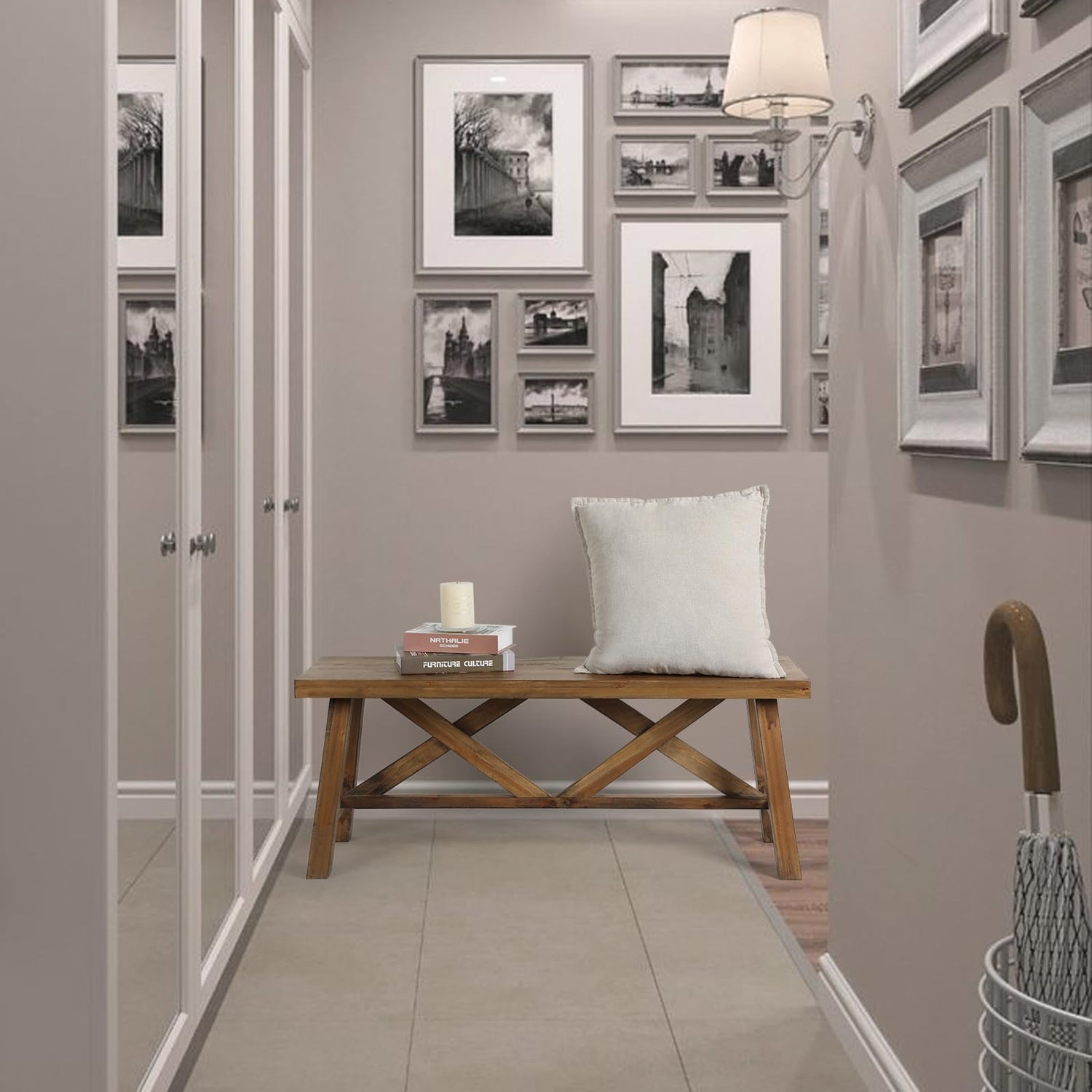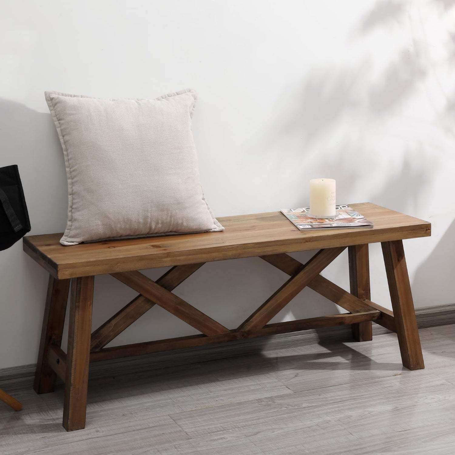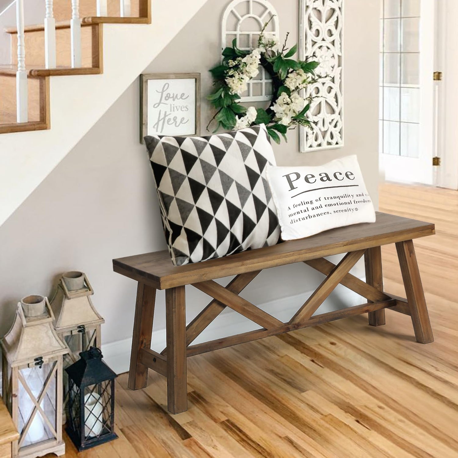 Wnutrees 43" Farmhouse Wood Bench, Rustic Solid Wood Entryway Bench Seat with Double X-Structure for Dining Room, Living Room, Hallway, Bedroom, Structural Stability, Natural