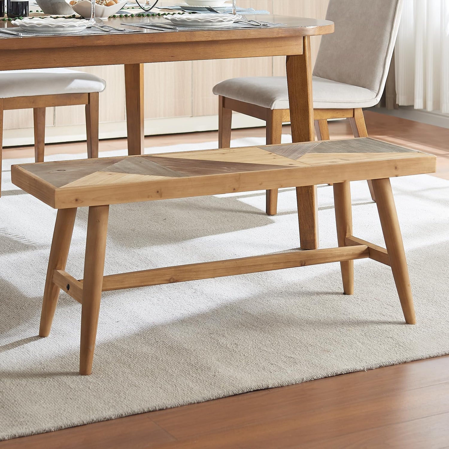 Wnutrees 43" Farmhouse Wood Bench,Solid Wood Entryway Bench for Indoor,Rustic Wood Bench for end of Bed, Handcrafted Finish, Natural