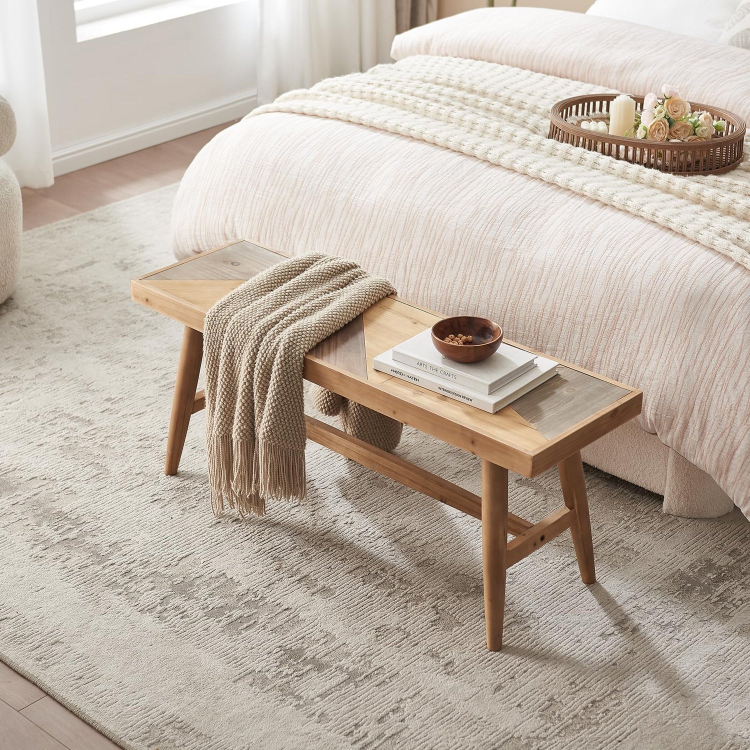 - 【Solid Wood & Handmade】Crafted from 100% solid wood, this handmade bench ensures unmatched durability and a timeless, natural aesthetic that complements any home decor