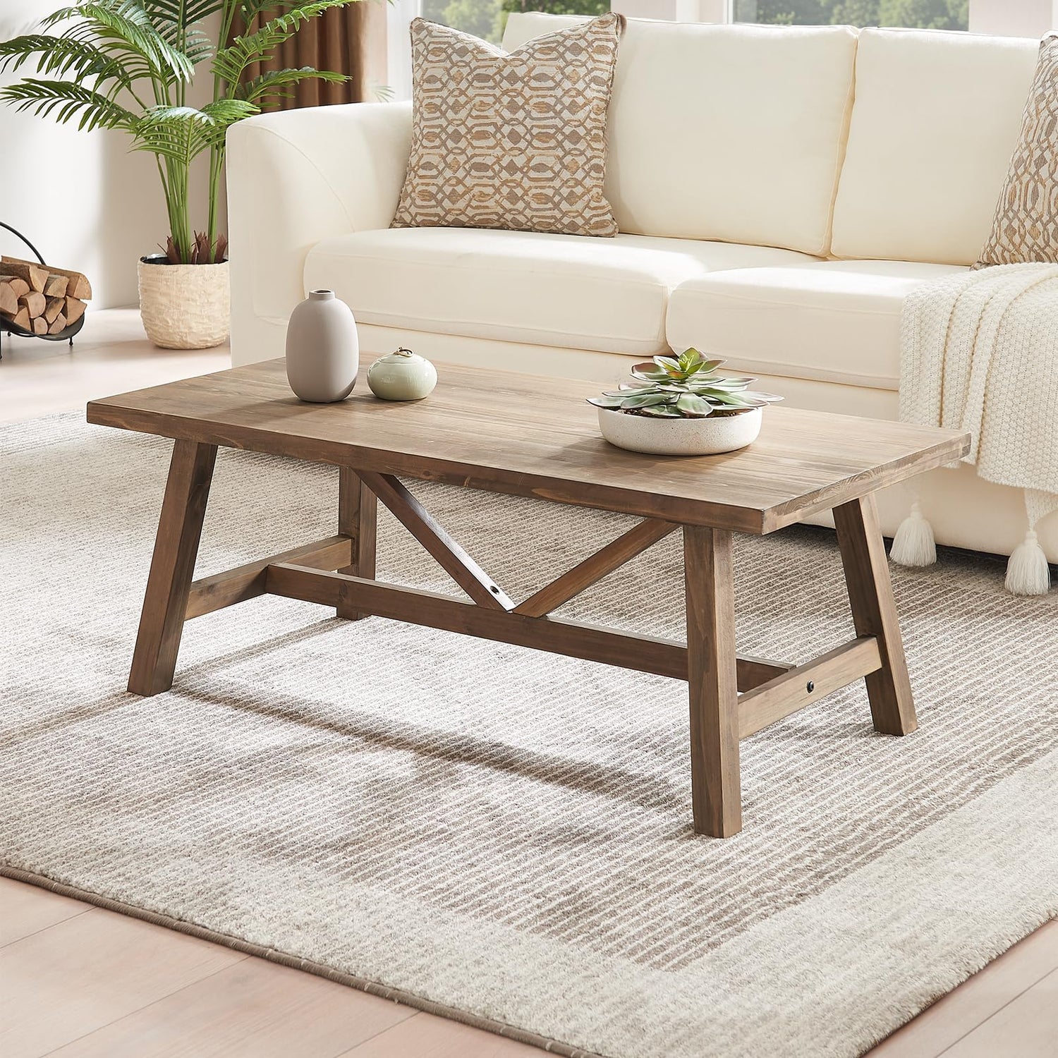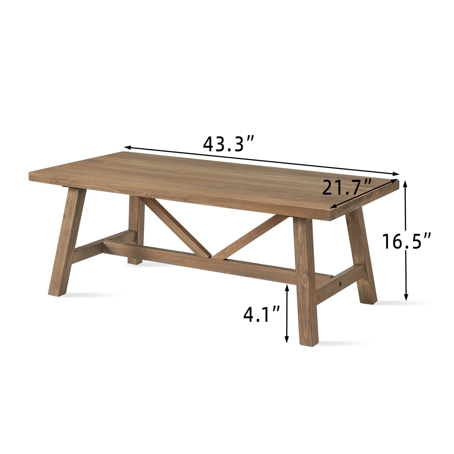 Wnutrees Farmhouse 43" Coffee Table,Solid Wood Center Tables for Living Room and Office, Rustic Wooden Rectangular Table with V-Shaped Support, Natural