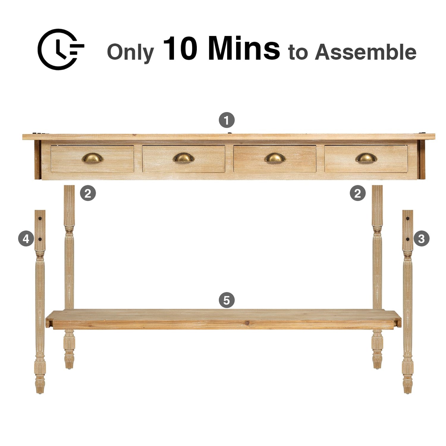 Wnutrees Farmhouse Console Table with 4 Drawers, 60" Long Narrow Boho Sofa Foyer Table with Large Storage Space, Solid Wood Frame and Legs for