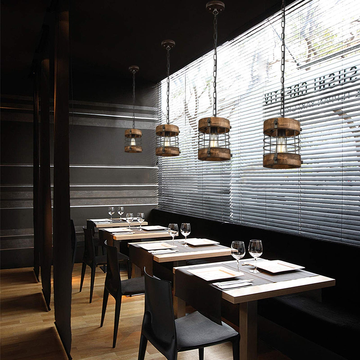 - EASY INSTALLATION --- The round wooden metal pendant light comes with clear instruction and includes all mounting hardware for quick and easy installation. This 1-light chandelier decorative lighting is compatible with sloped ceilings. The whole installation will take no more than 15 minutes