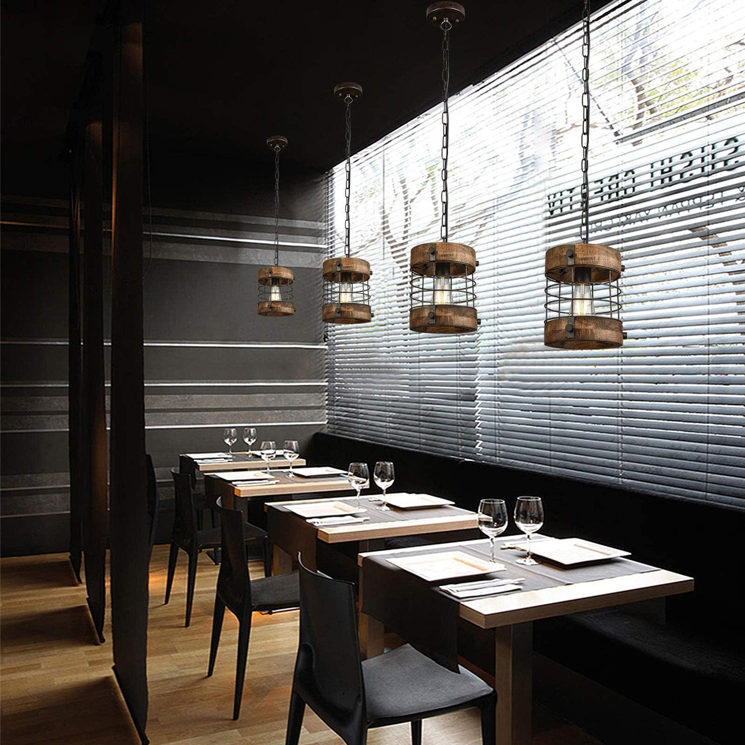 - RETRO INDUSTRIAL DESIGN: Perfect combination of metal and wood frames, with rustic farmhouse style, WOCHOS round wooden chandelier is perfect for kitchen, dining room, foyers, corridor, basement, bar, restaurant, coffee shop, club decoration