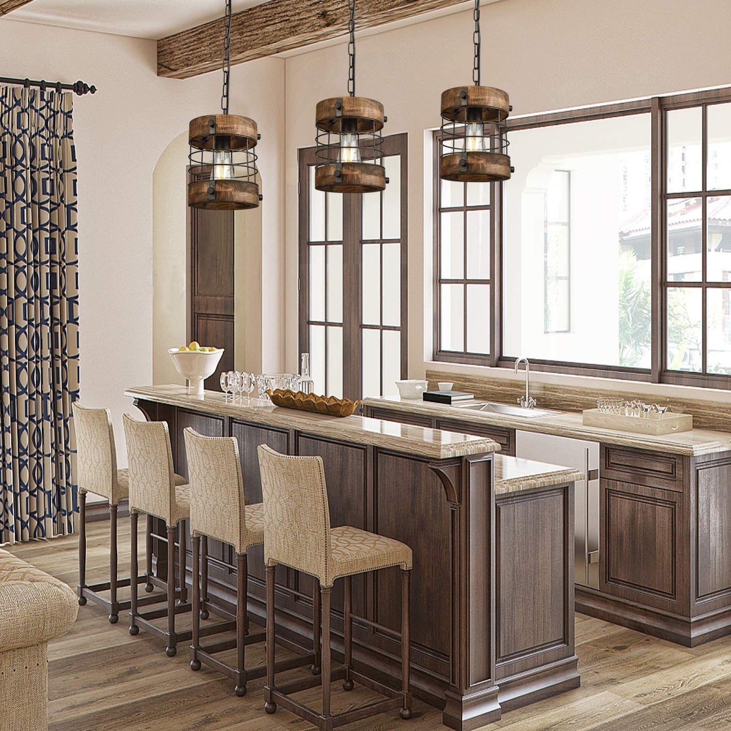 - PENDANT LIGHT DIMENSIONS: Antique round pendant light with 7.9" Diameter x 8.7" Height. Includes Rubber insulated adjustable cord with 47.2 inches max height, you can adjust the hanging height as you request. WOCHOS wood & metal wire cage pendant light gives you a higher light perception and stable and long-lasting lighting