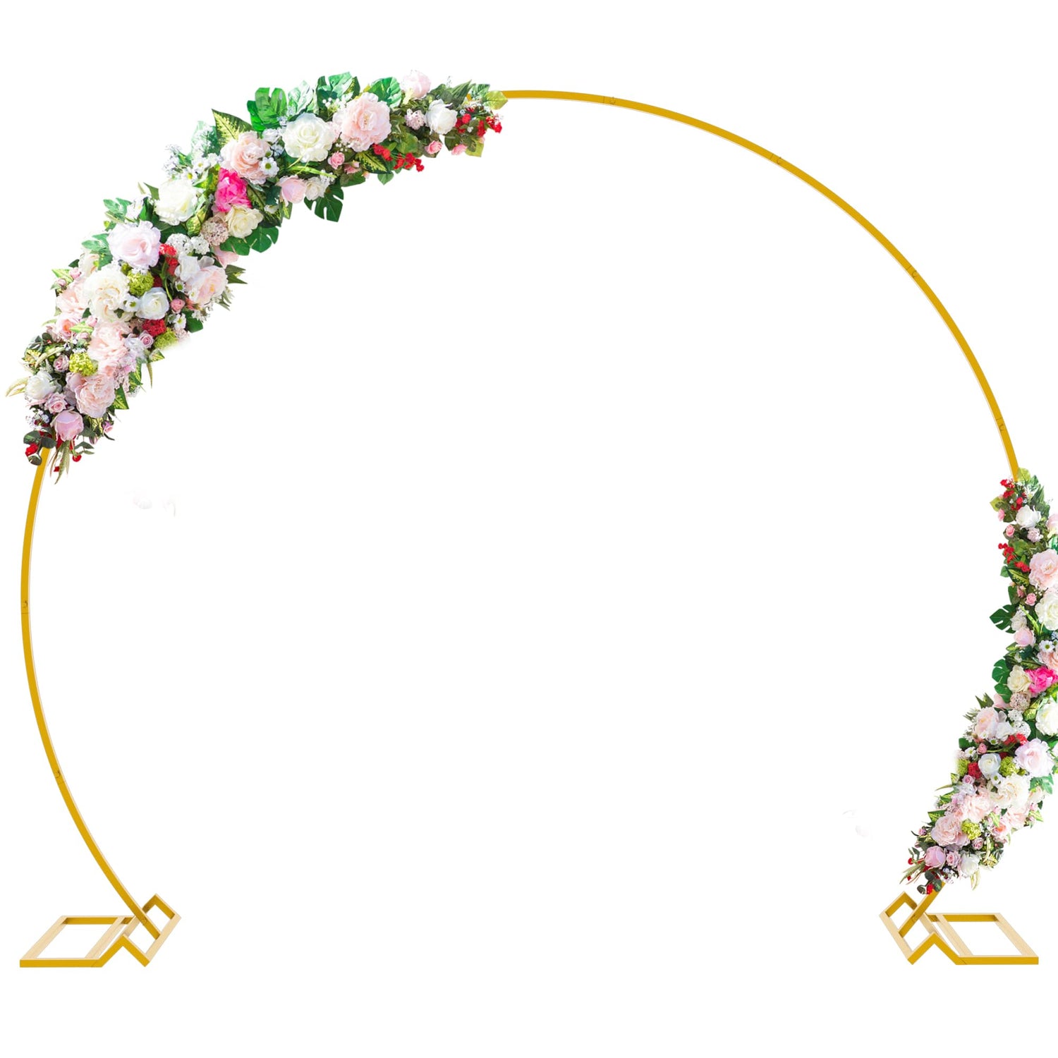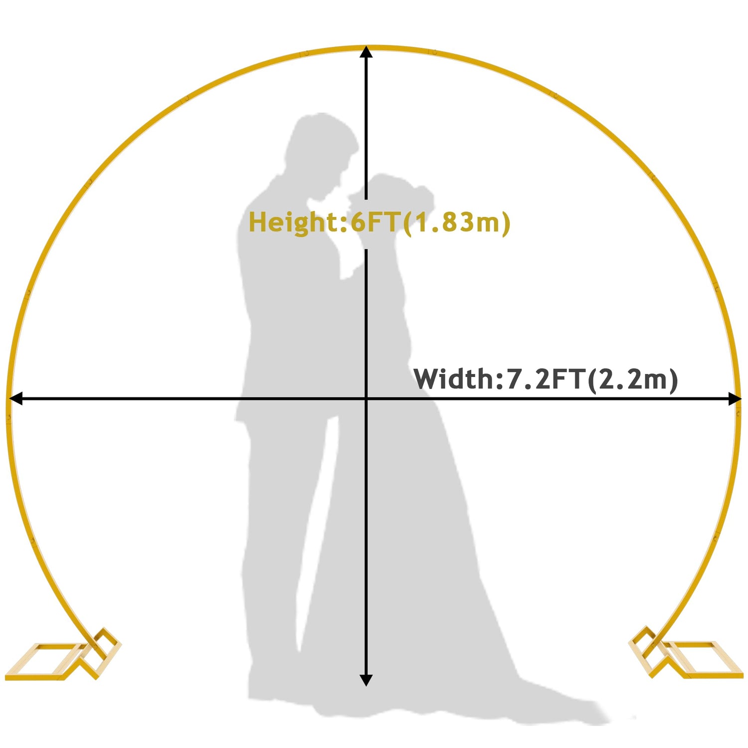 - 【Sturdy Wedding Arch Stand】7.2FT/2.2M Round backdrop stand comes with solid square steel pipes (one arch tube without screws is installed for first or final part of semicircle) and base, golden painted exterior, rust proof. A well package ensure it would not mess up your plan.