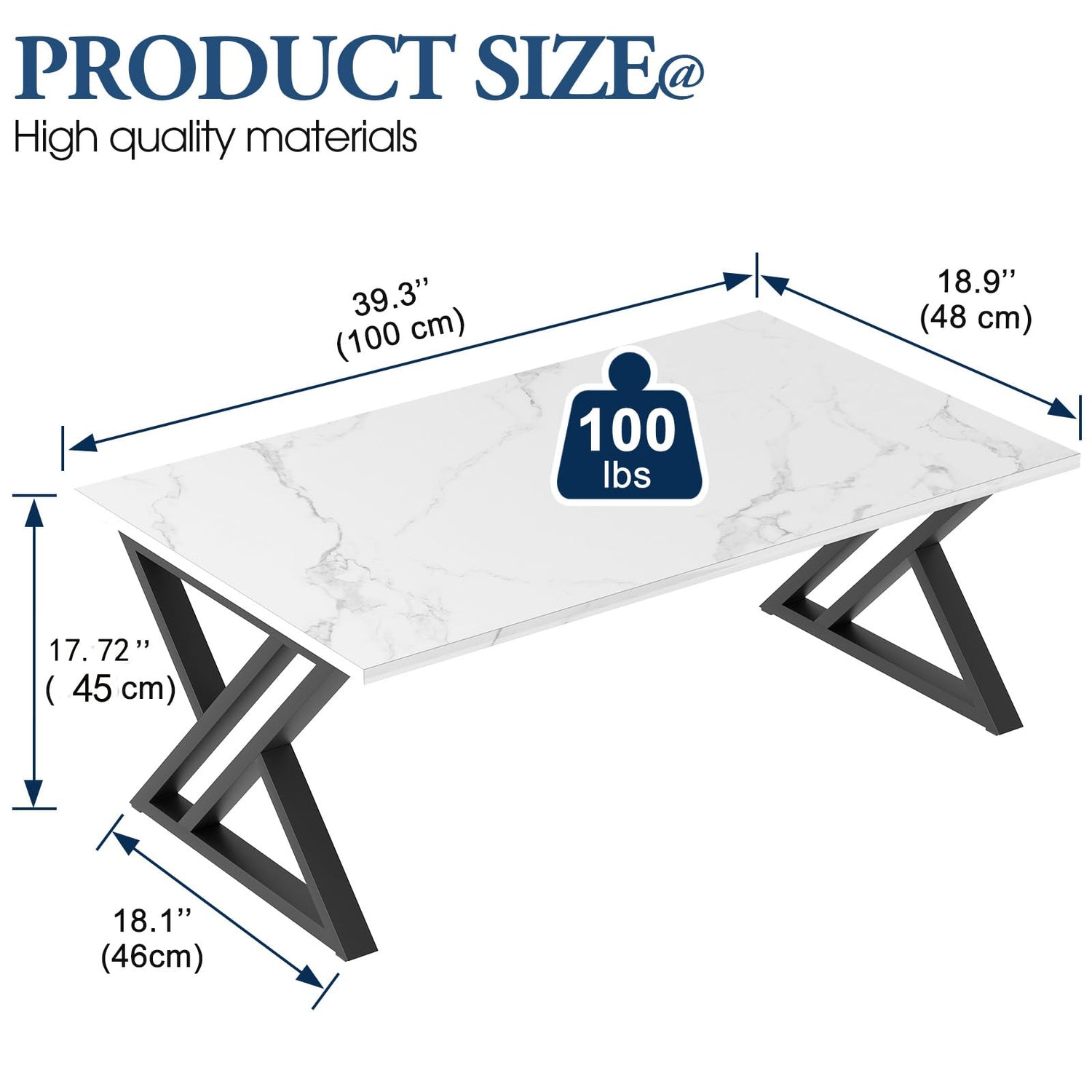 - 【FASHION & ELEGANCE 】This rectangular coffee table is made up of faux composite board top with marble grain and black metal legs, showing the natural beauty of the coffee table with a modern design and simple structure. Classic white tables and high-quality materials can be paired with any style of room, simple and stylish.