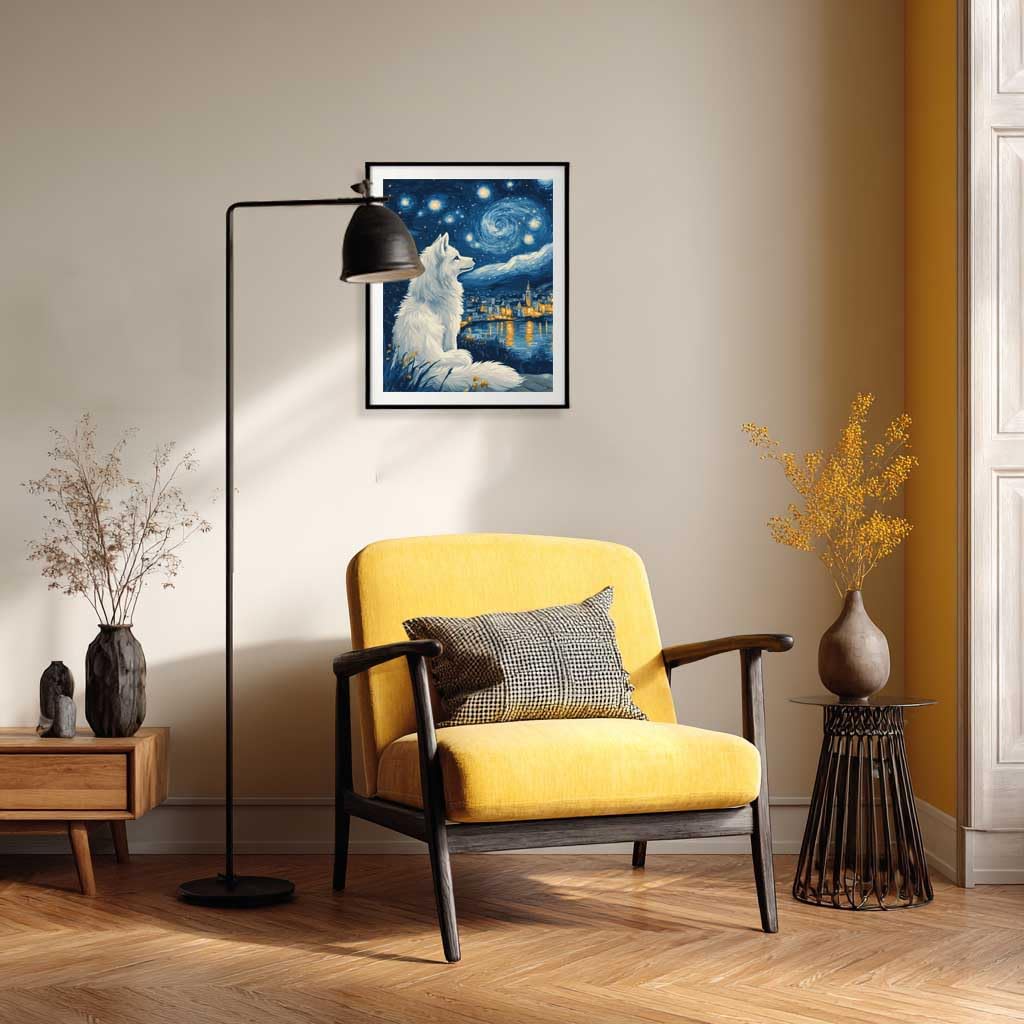 Wolf Paint by Number, White Wolf Paint by Numbers Kit for Adults, Wolves Canvas Wall Art, Starry Night Animals DIY Acrylic Painting for Gift, Home Wall Decor(16x20inch, Unframed)