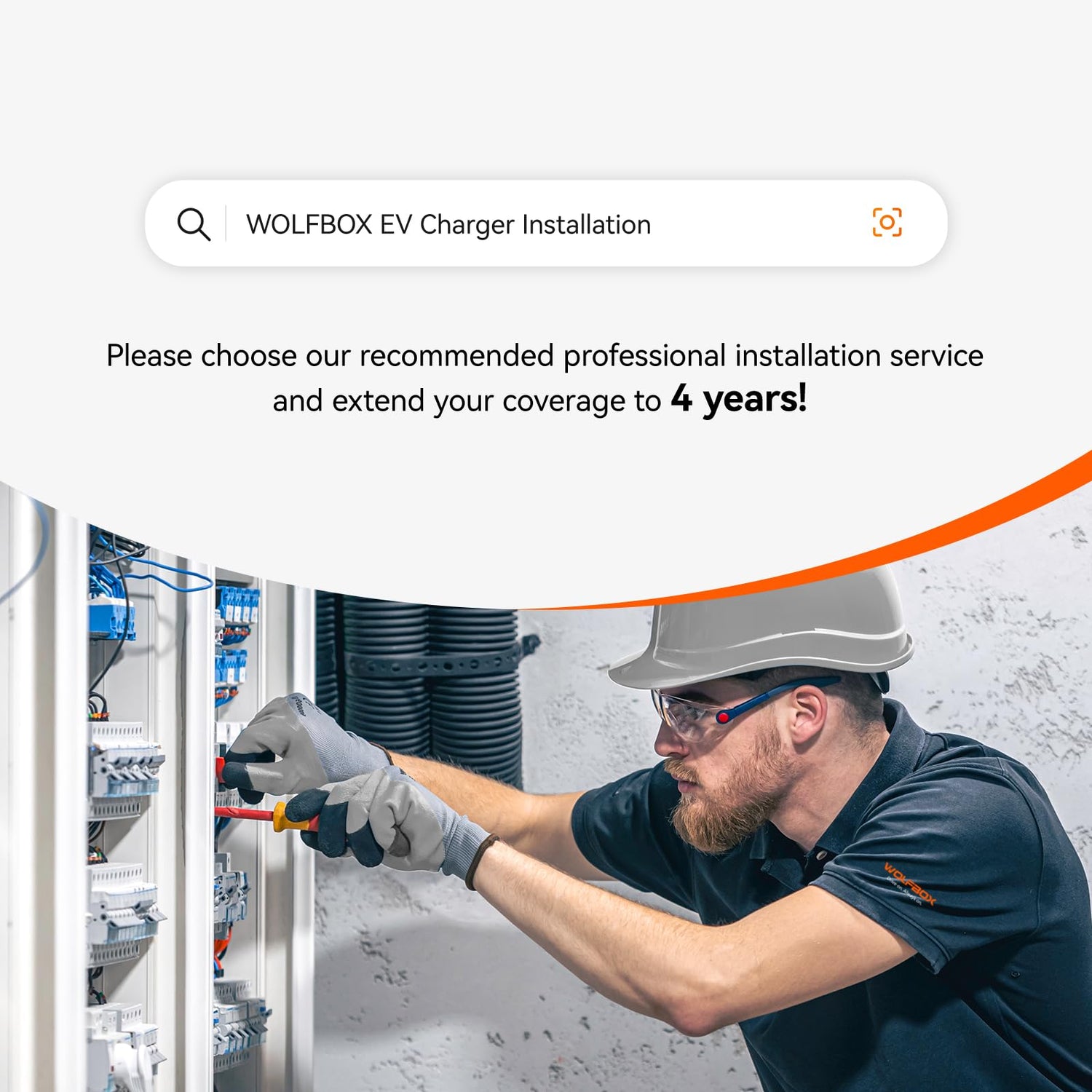 - Flexible Installation: The WOLFBOX electric car charger is easy to install and comes with an SAE J1772 connector, a 25ft extension cable, an EV charger holder, and installation tools, suitable for both indoor and outdoor use. For your safety, please consult a professional electrician for installation.
