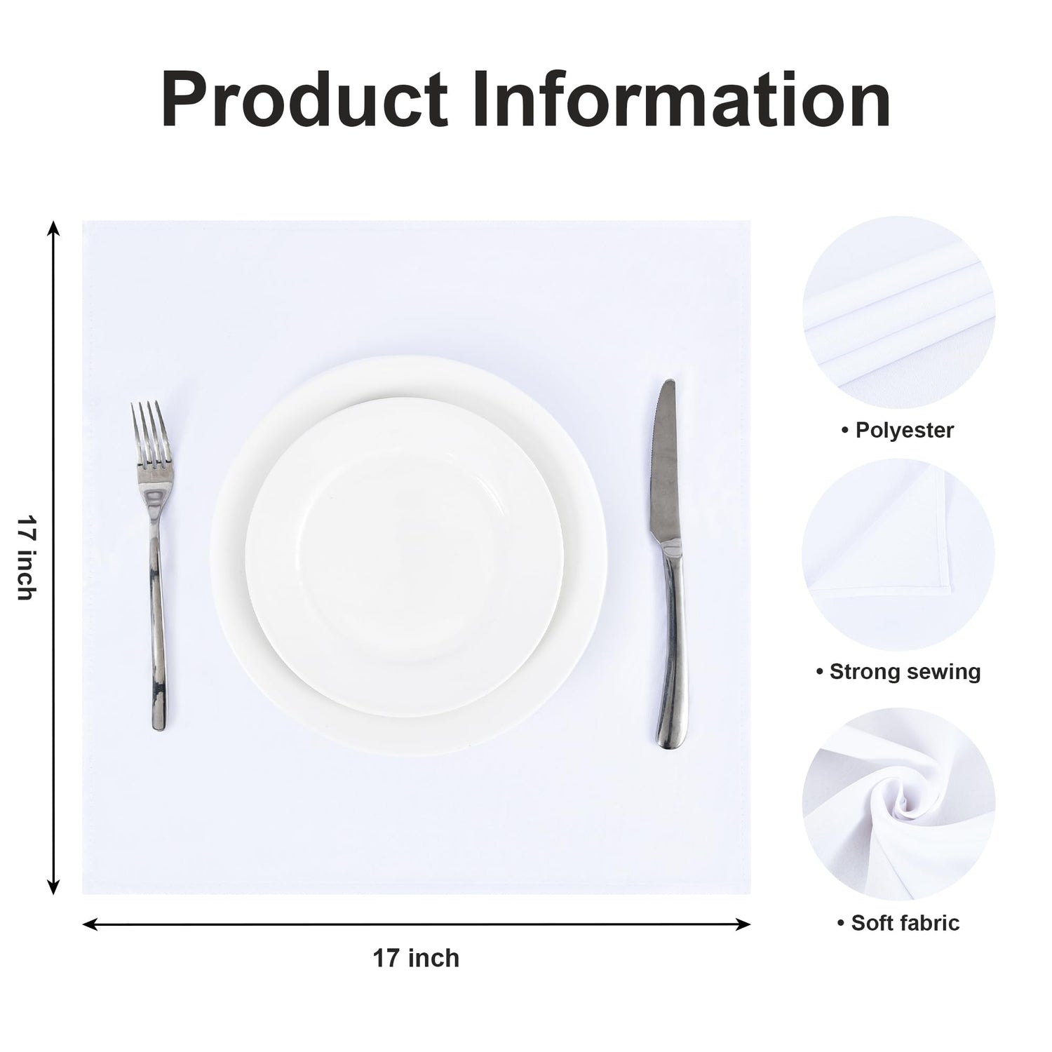 Wolkemer Set of 4 White Cloth Napkins 17 x 17 Inches Solid Washable Polyester Dinner Napkins with Hemmed Edges for Dinners Parties Weddings Banquets Events Table Decoration