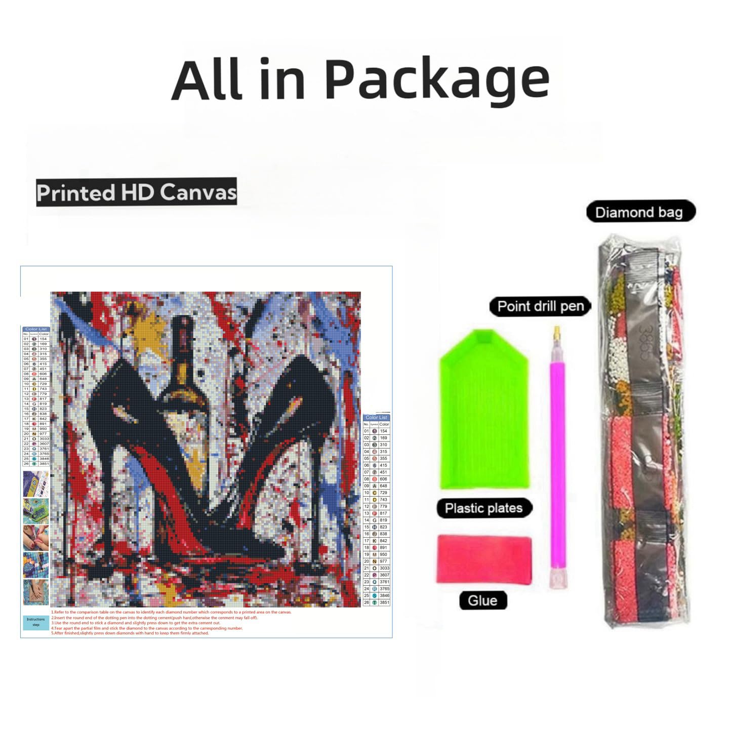 Woman High-Heel Shoes and Wine 5D Diamond Art Painting by Number Kits for Adults DIY Paint with Full Drill Round Diamond Gems Painting Art Craft for Home Wall Decor 13.8x13.8inch(2)