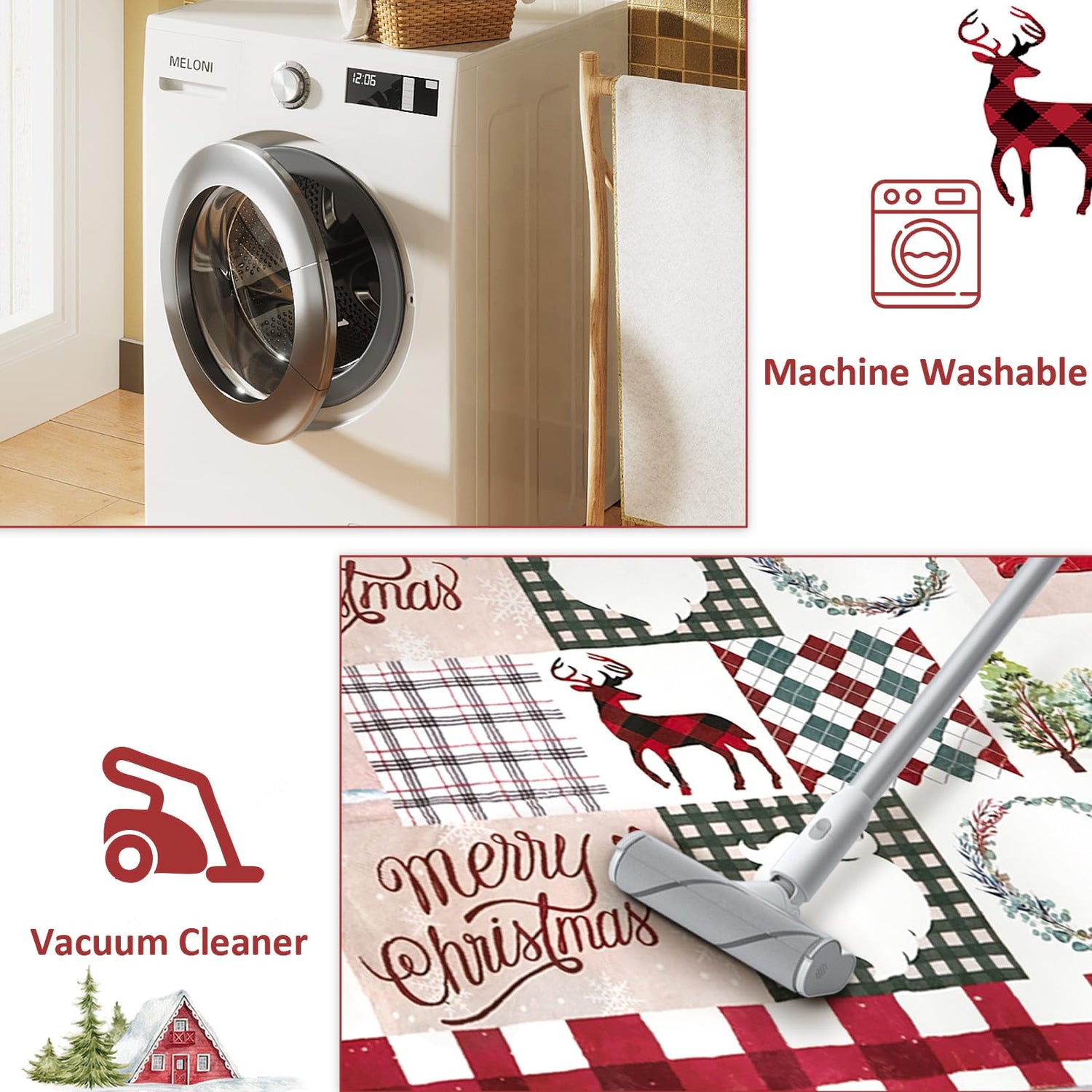 - 【Christmas Patchwork Design Rug】: This red area rug combines Christmas moose, geometric and gift motifs with a stylish holiday style, adding a festive atmosphere to the interior while also adding a stylish and fun touch of color to the room.