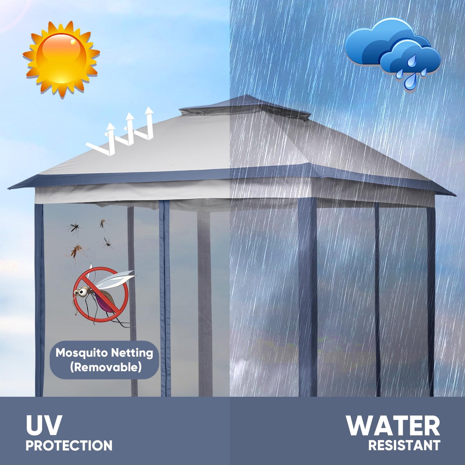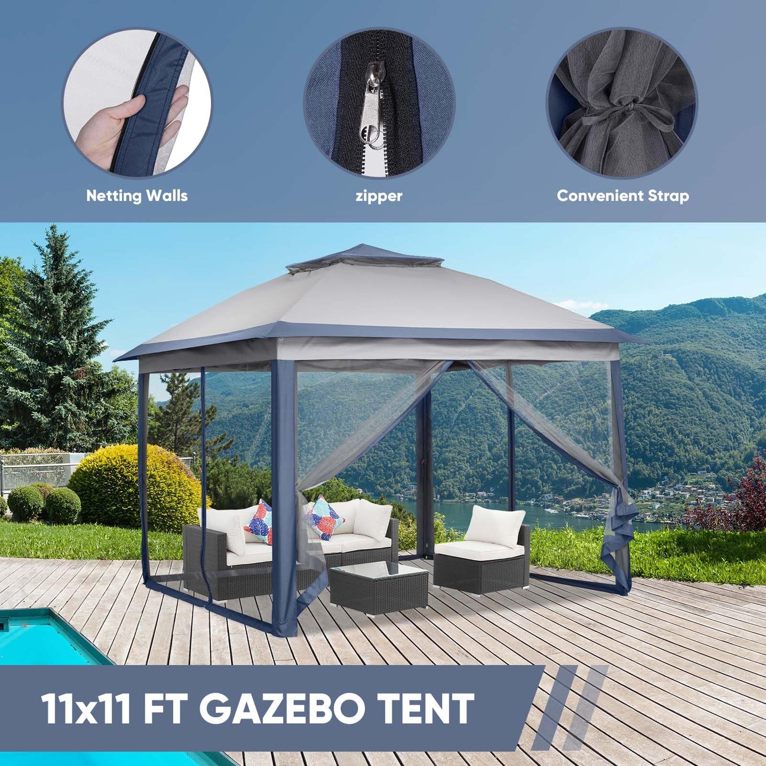Wonlink 11x11 FT Gazebo Tent, Outdoor Tents for Parties with Mosquito Netting, Folding Heavy Duty Height Adjustable Canopy Tent for Patio Backyard Garden
