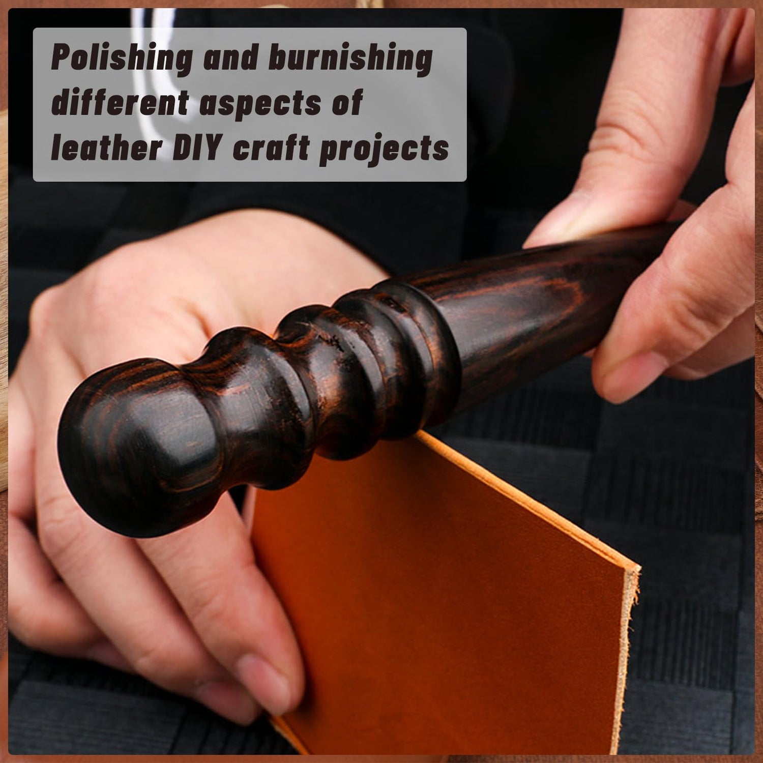 WONVOC Leather Edge Burnish Kit 2 PCS Ebony Wood Leather Burnisher Tool, Round Head Leather Edge Burnishing Tool, Leather Edge Slicker Burnisher, Leather Craft Tool