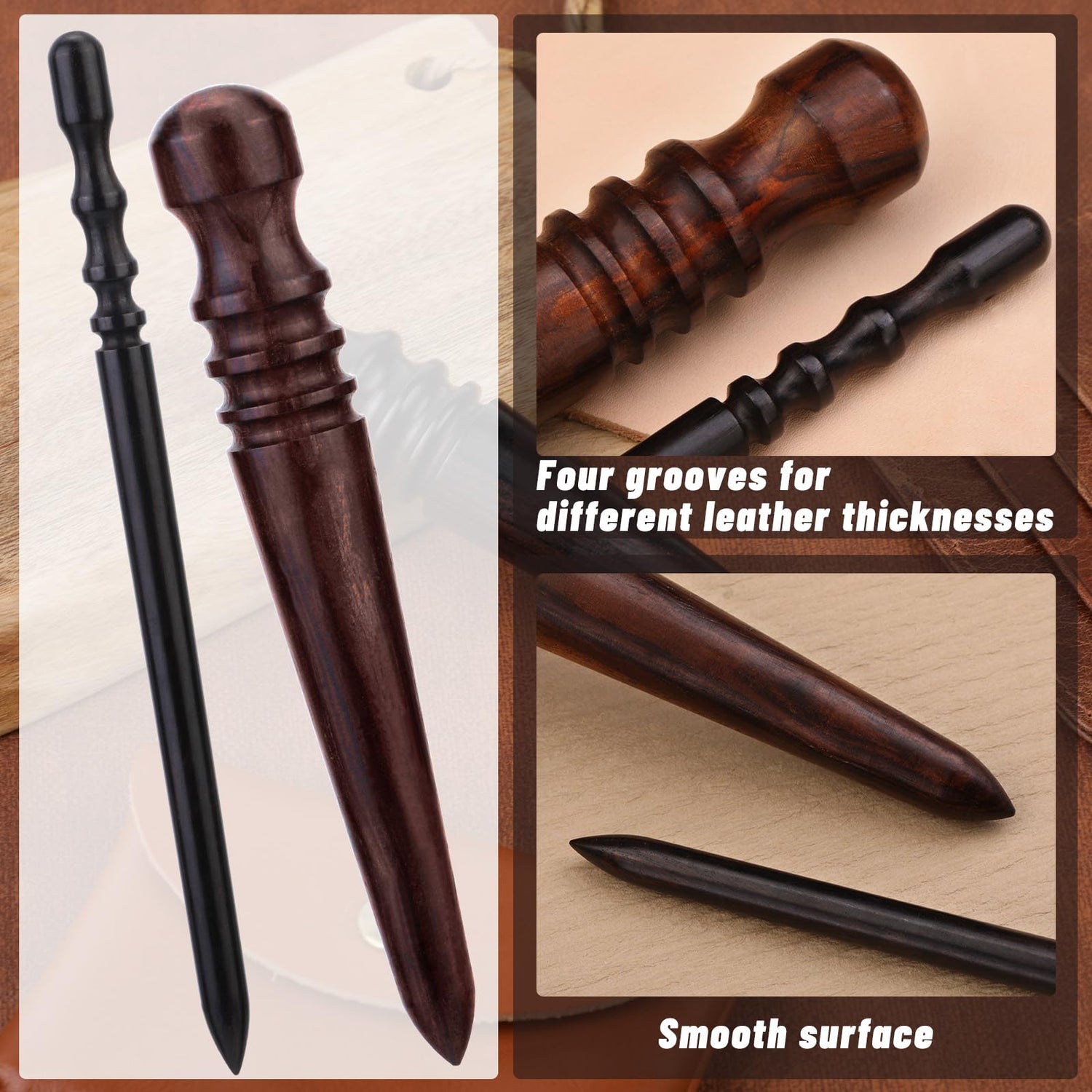 - 2 pcs Leather edge burnish set: Made of high-density ebony, including a round burnish and a thin one. Round burnisher length 5.51 inch, thin stick is 5.9 inch