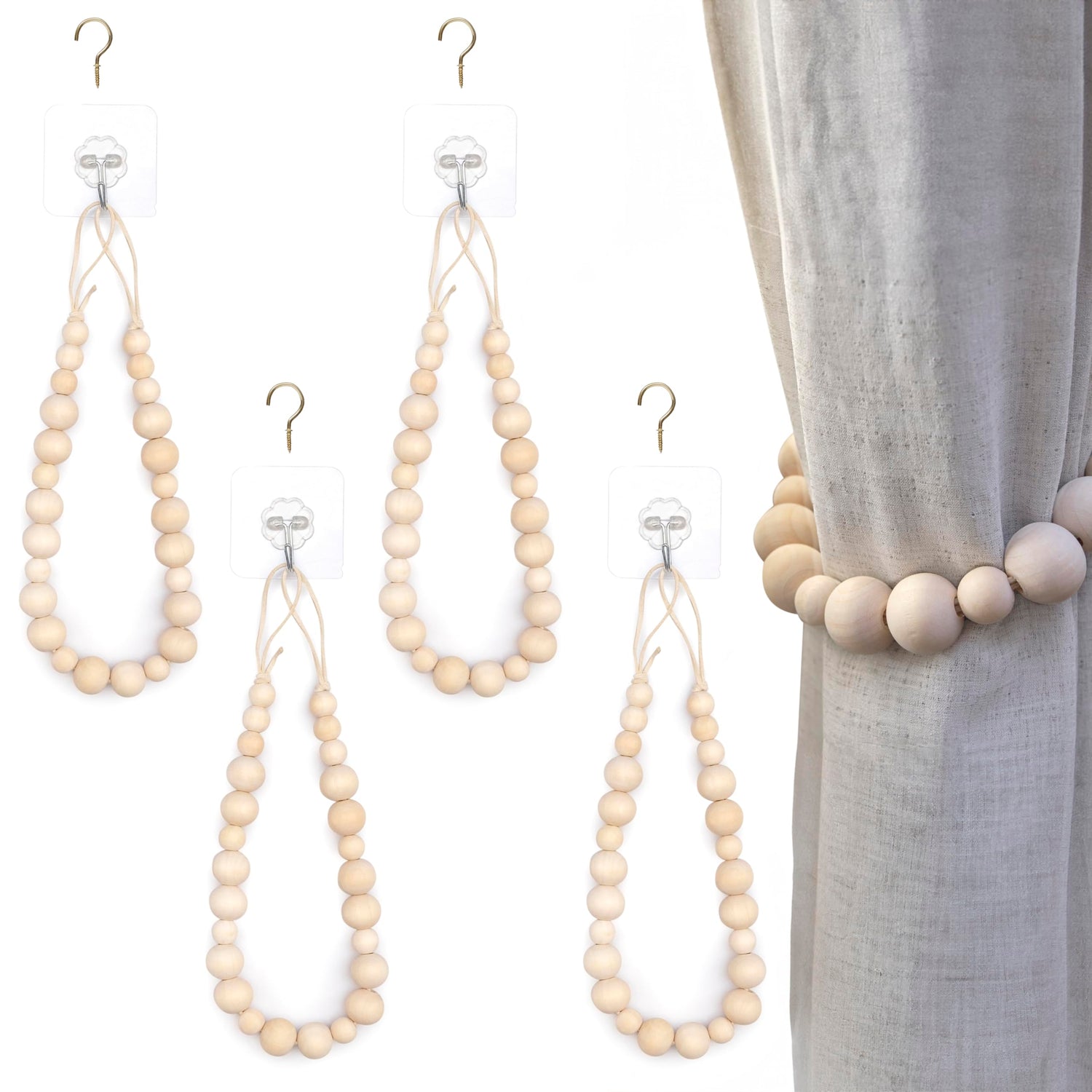 Wood Bead Curtain Tiebacks Set of 4, Boho Curtain Tiebacks, Farmhouse Curtain Tiebacks, Curtain Holder Tiebacks, Rustic Curtain Tiebacks, Curtains Ties, Curtains Tiebacks, Beaded Curtain Ties Backs