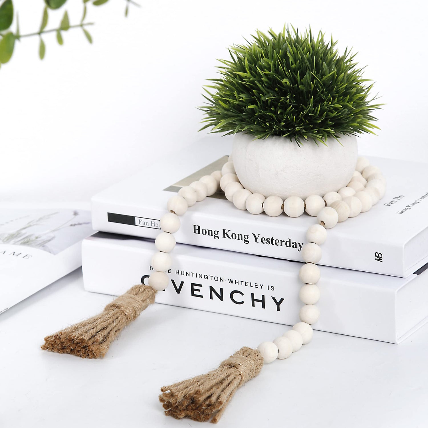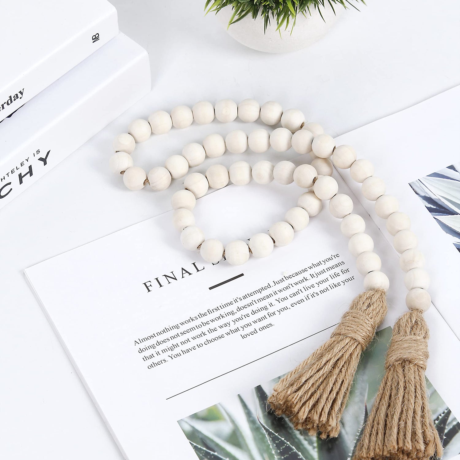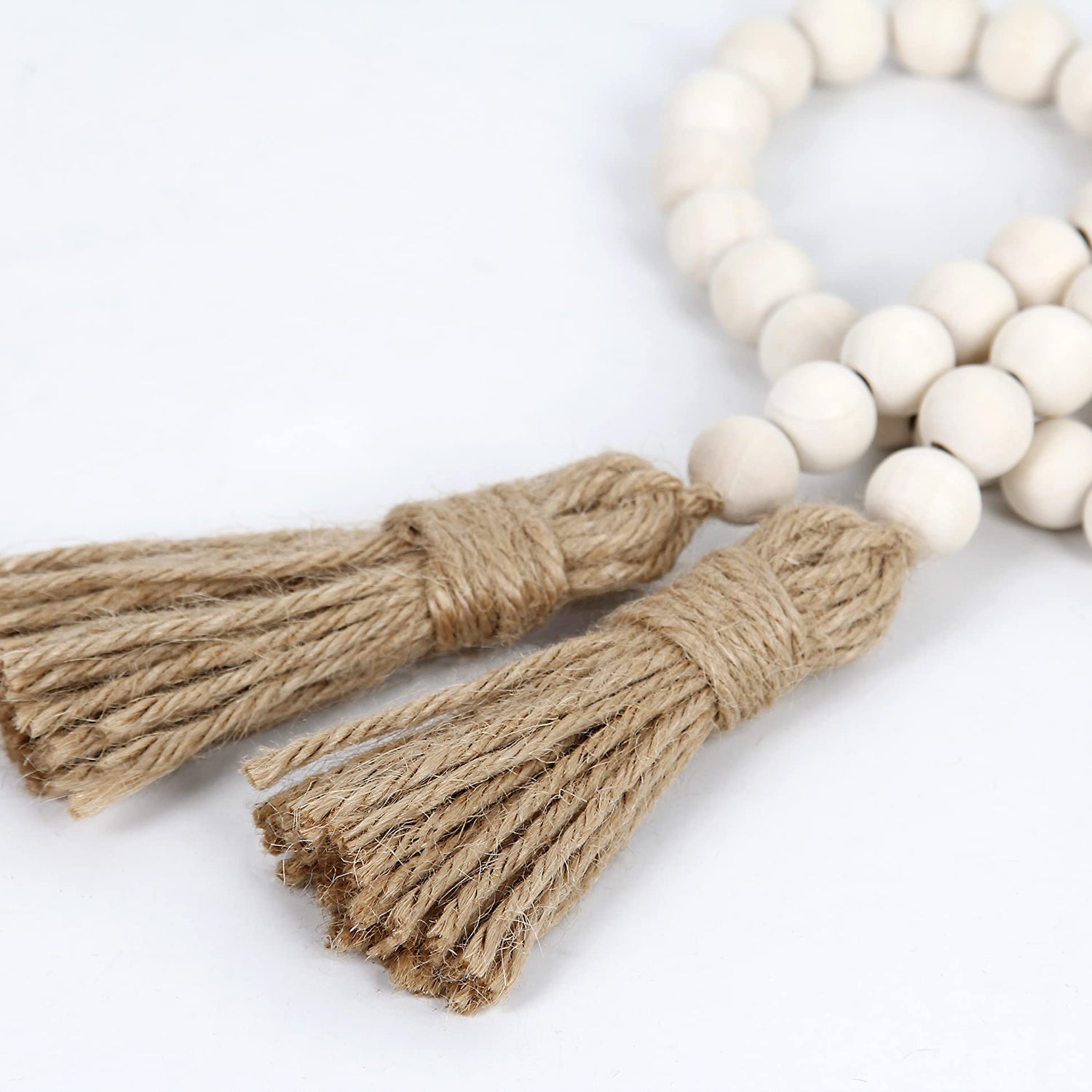 - The wooden bead garland is made from natural wood and jute tassel,totel length is 39",diameter is 16mm