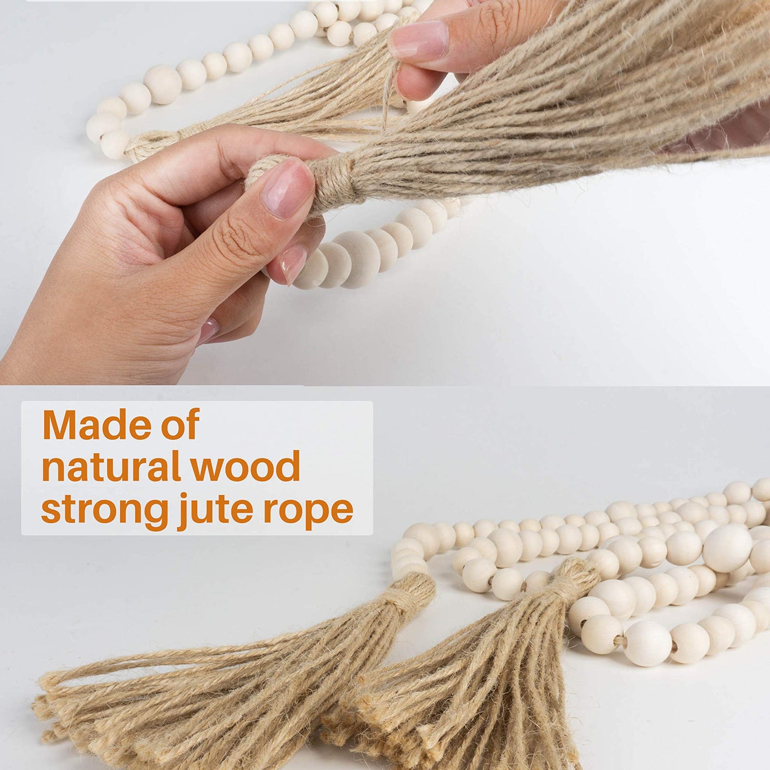 - MATERIAL: wood bead garland with tassels is made of natural solid wood beads and strong jute rope which will bring your peace