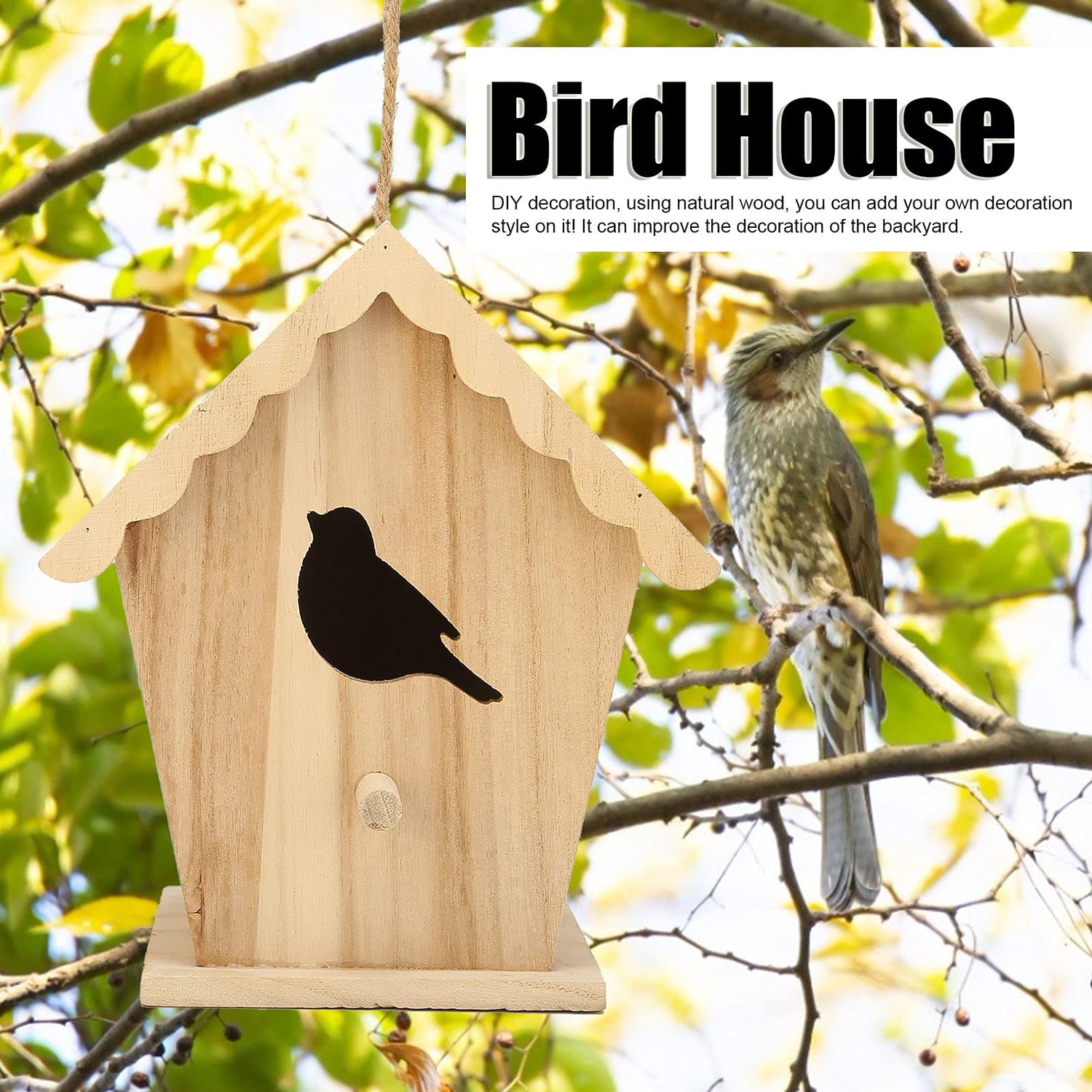 Wood Birdhouse,Unfinished, DIY Bird House Wood Birdhouse Birdhouse to Paint for Birdwatching Wood Frame for Finches and Songbirds
