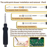• ✪【High-quality Wood Burning Pens】: The handle of the wood burning pen is made of non-slip, heat-resistant, and heat-insulating material, and the burning pen has strong insulation, so it will not be hot and safe to use. The soft-touch gives you better control while painting. Have a more comfortable painting experience. Professional wood burning kit can create beautiful works. You can use Pen 1 (wire tip) and Pen 2 (solid) together or separately.