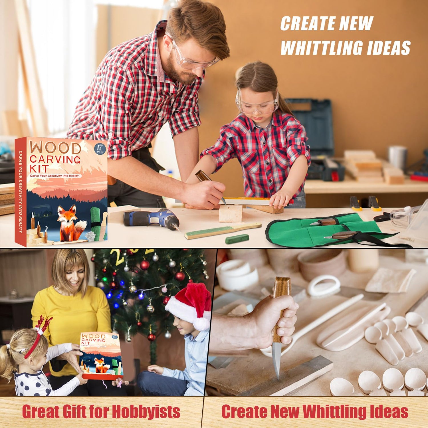 - 【Enjoy Carving Now】The whittling knife kit also includes safety gloves to keep your hands protected while carving. Whether you're a beginner or a seasoned carver, this kit is perfect for relaxing in your spare time or creating wooden masterpieces with your family and friends. It also makes for a great gift for holidays such as Christmas, birthdays, and Mother's day.