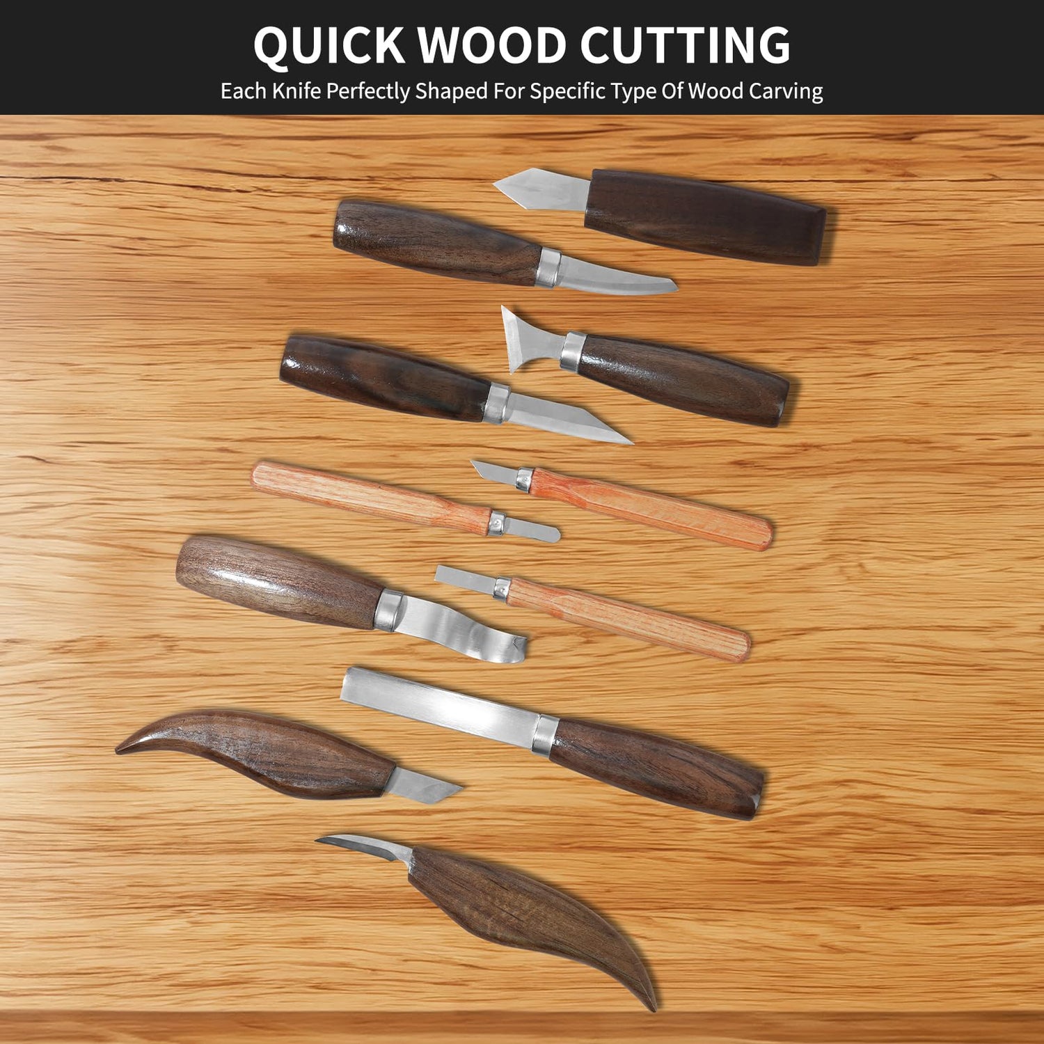- 【WOOD CARVING TOOLS WALNUT HANDLES】:Not Only Do These Carving Tools Come In A Great Quality, They Also Look Stylish And Feel Great In Your Hand With Our Chocolate Walnut Handles.