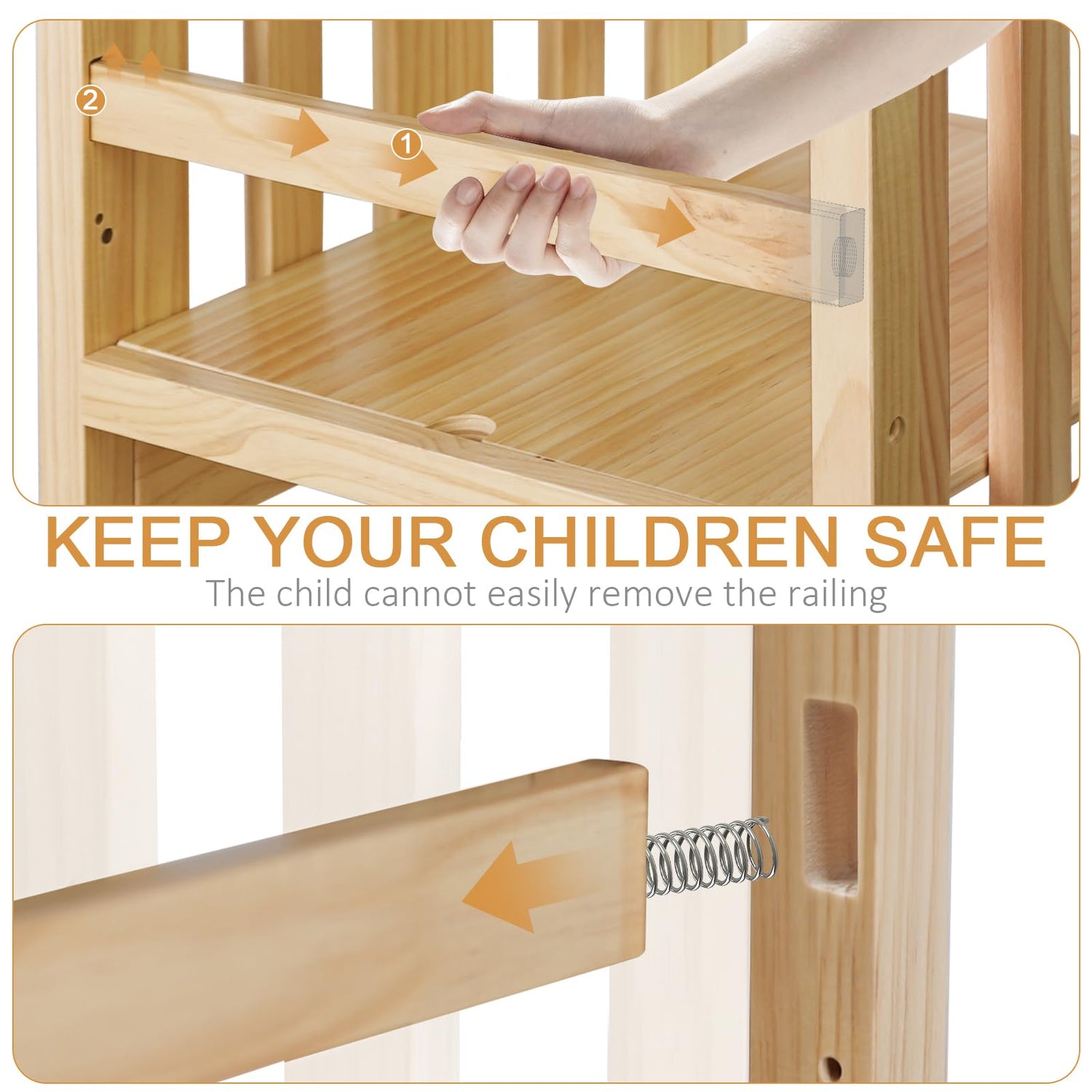 - SAFE AND SECURE: Closed on four sides and anti-slip strip to ensure your child doesn't slip. The spring compression railing design can better protect the safety of children, and children cannot open the railings by themselves. Add four pairs of balance boards for added stability. It is also equipped with a non-slip mat, which will not slip on slippery floors in the kitchen and bathroom, and will not harm the floor. Also has ASTM and CPSIA certification
