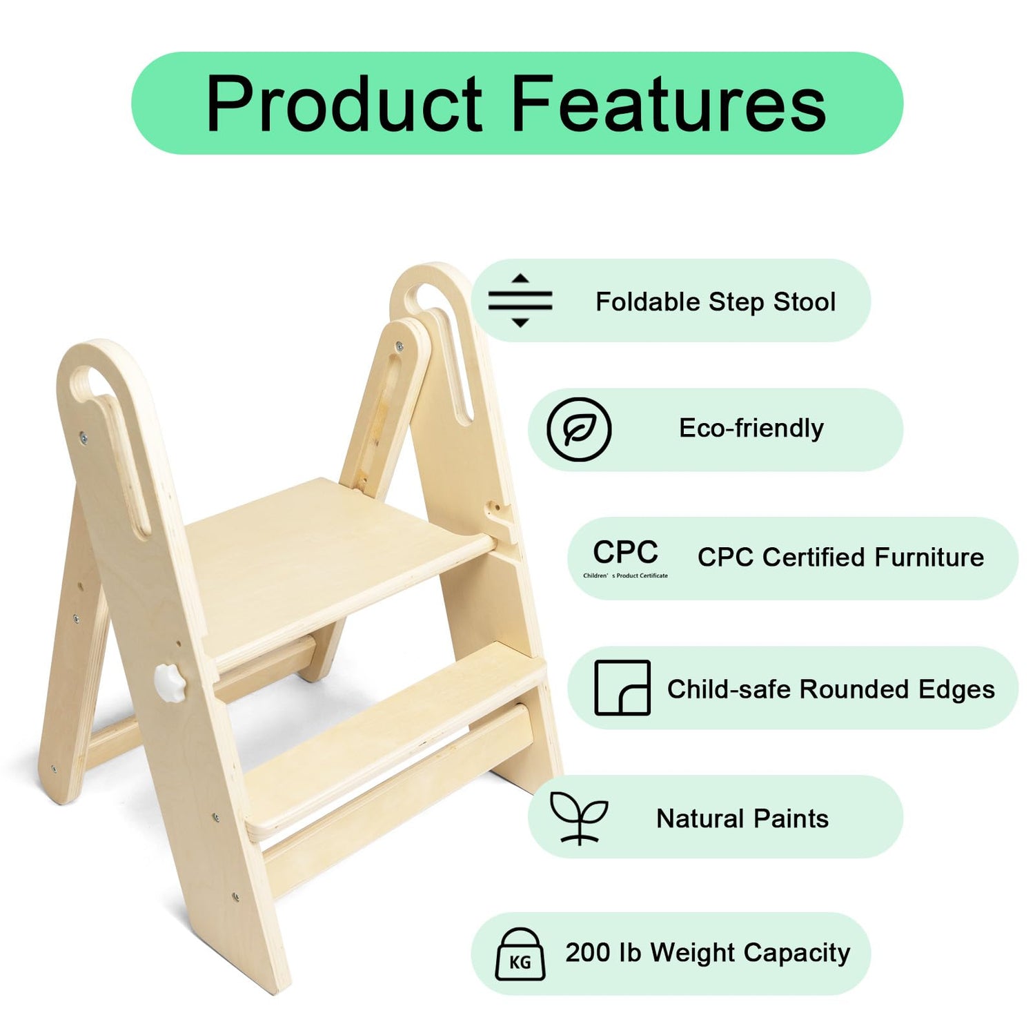 - [CPC certification] Certified by the US Consumer Product Safety Commission (CPSC), this step stool is made from natural solid wood, is chemical-free, and can support up to 200 pounds, ensuring your child's safety and comfort.