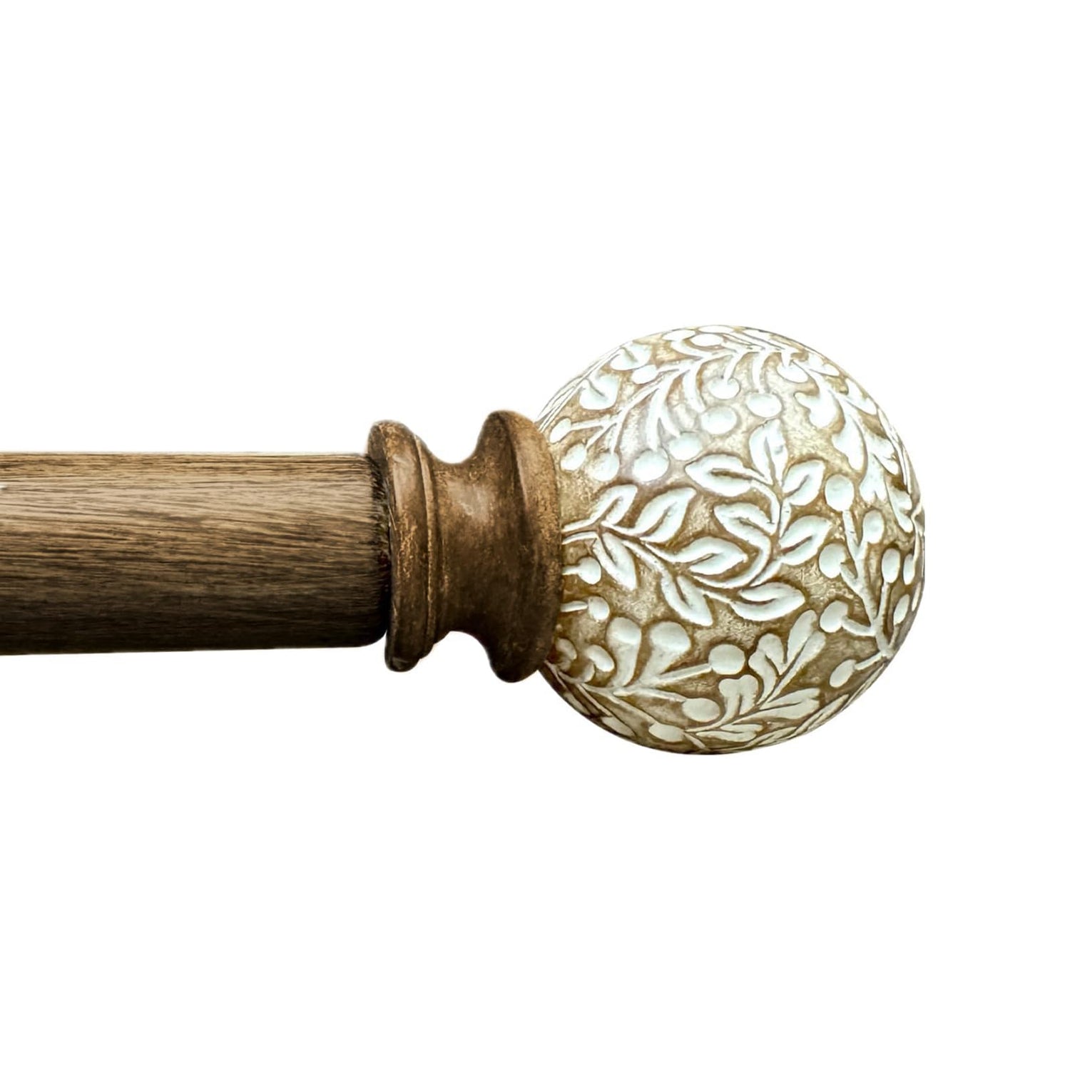 - *Wood Curtain Rod *LDSP Imitation Wood Curtain Rod: Light wood grain ball curtain rod with decorative finials and high quality iron pipe are made of imitation wood grain effect, whole set of curtain rods of imitation wood. Drapery rods were made of imitation wood grain rather than craved wood. Wood grain design is consistent from start to finish, make brown curtain rod look like real wood to create a close to natural visual effect.