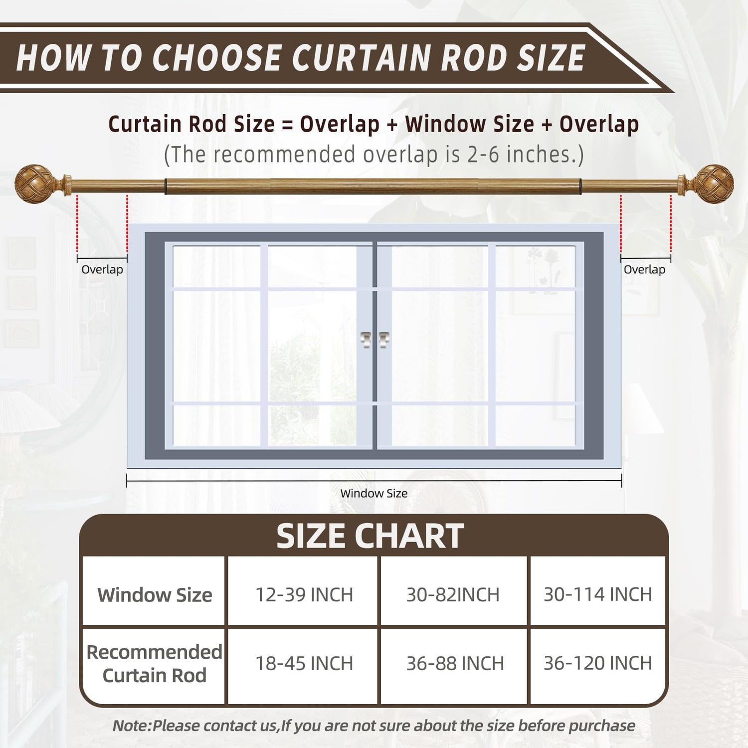 - Wood Curtain Rods for Windows 48 to 84 inch(4-7ft): Walnut Curtain rods include 4 x 16" x 1" fixed rods, 2 x 16" x 7/8" adjustable rods, 2 x finial,3 x bracket, 3 x connector, 6 x anchor, 6 x screw. Curtain rods for windows can extend from 36 to 88 inches, choose the right size curtain rods according to the length of your window.