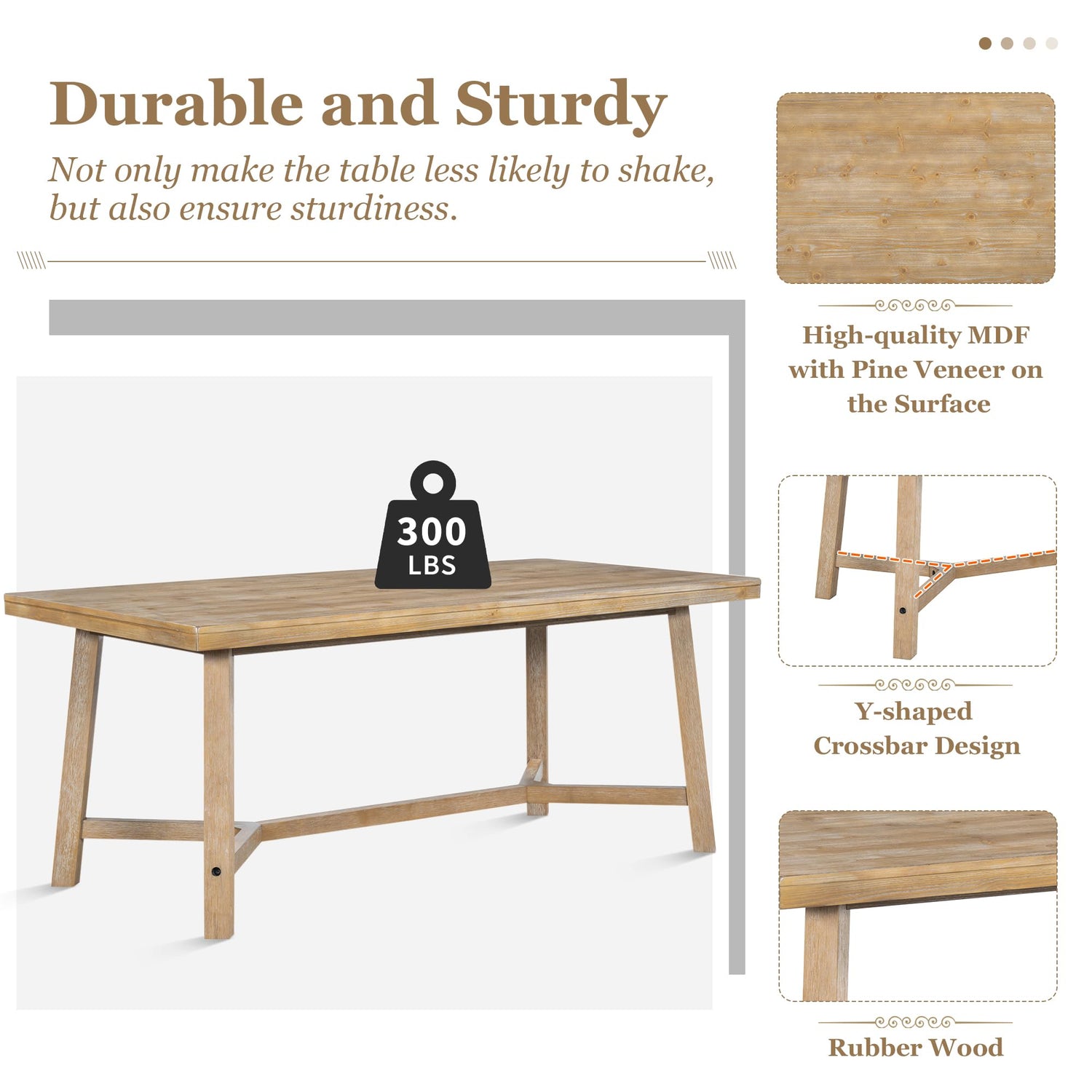 - [Durable Constructed Dining Table Set] - This tabletop is made of high-quality MDF and has a pine veneer surface. The wood texture is clear and beautiful, giving people a natural and rustic feeling. The bottom of the table legs has added a Y-shaped crossbar design, and the legs are composed of carefully selected rubber wood, which not only makes the table less prone to shaking, but also ensures durability. Desktop weight: 300 pounds.