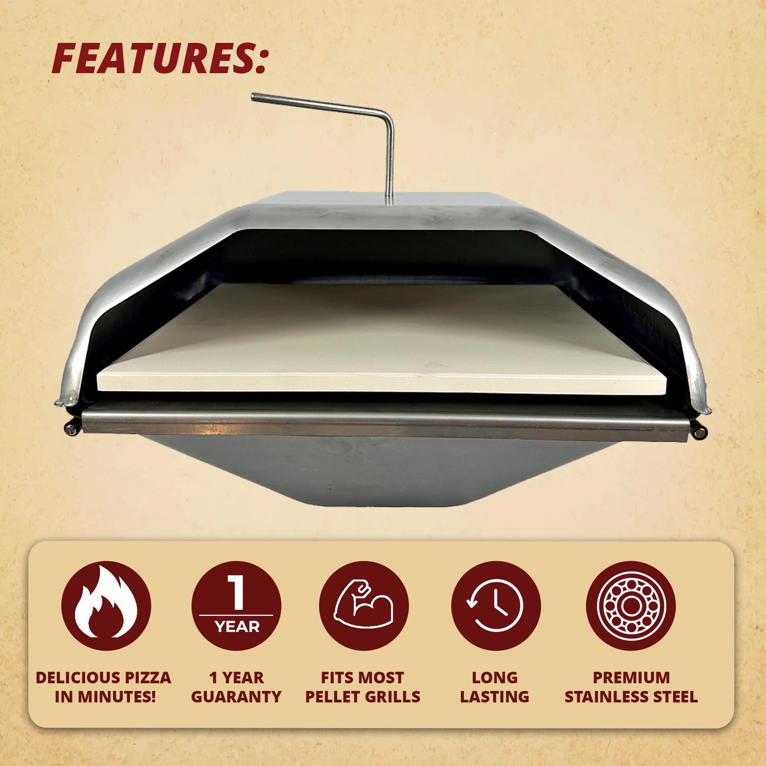 - ULTIMATE PELLET GRILL PIZZA ATTACHMENT: Elevate your pizza-making game with our intelligent pizza oven attachment. Convert your Pellet Grill into a wood pellet-fired pizza oven for an authentic wood-burning pizza experience at home.