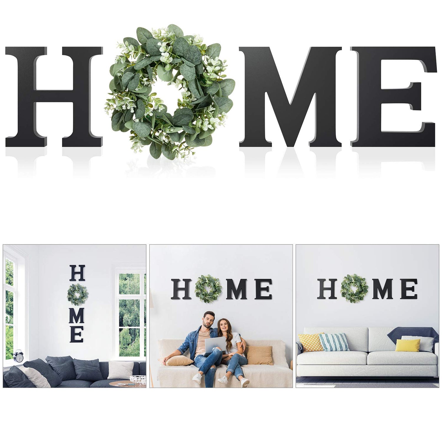 - DURABLE & RELIABLE QUALITY: The home sign with wreath comes with wood letters "H", "M", "E" and artificial eucalyptus greenery wreath for "O". The wood home letters for wall decor is made of high-quality, durable MDF wood, sturdy, thick, no breaks and no fading. The vivid-looking wreath is made of high-quality cloth and plastic, silk , non-toxic, looks natural and never wither and fall. The whole set enhance warmth and charming feeling to your home.